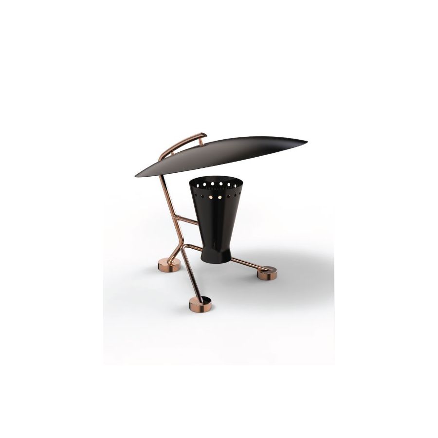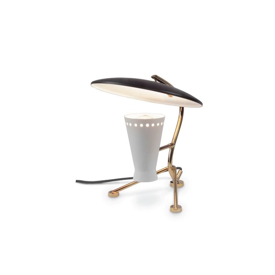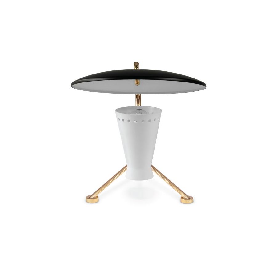 Representing everything that a tripod table lamp should be, Barry mid-century desk lamp is a handmade piece produced in Portugal by some of the finest artisans in the business. This brass lighting design features a shade and a top cover made in aluminum, top coated in matte black and matte white, which can be customized. The shade has a nickel plated finish, emphasizing the contemporaneity of this fine bedroom table lamp. Going as high as 13’, this is fantastic task and reading light for bed.