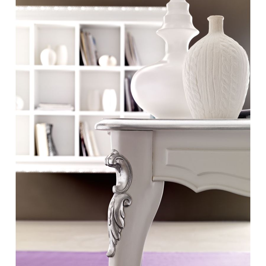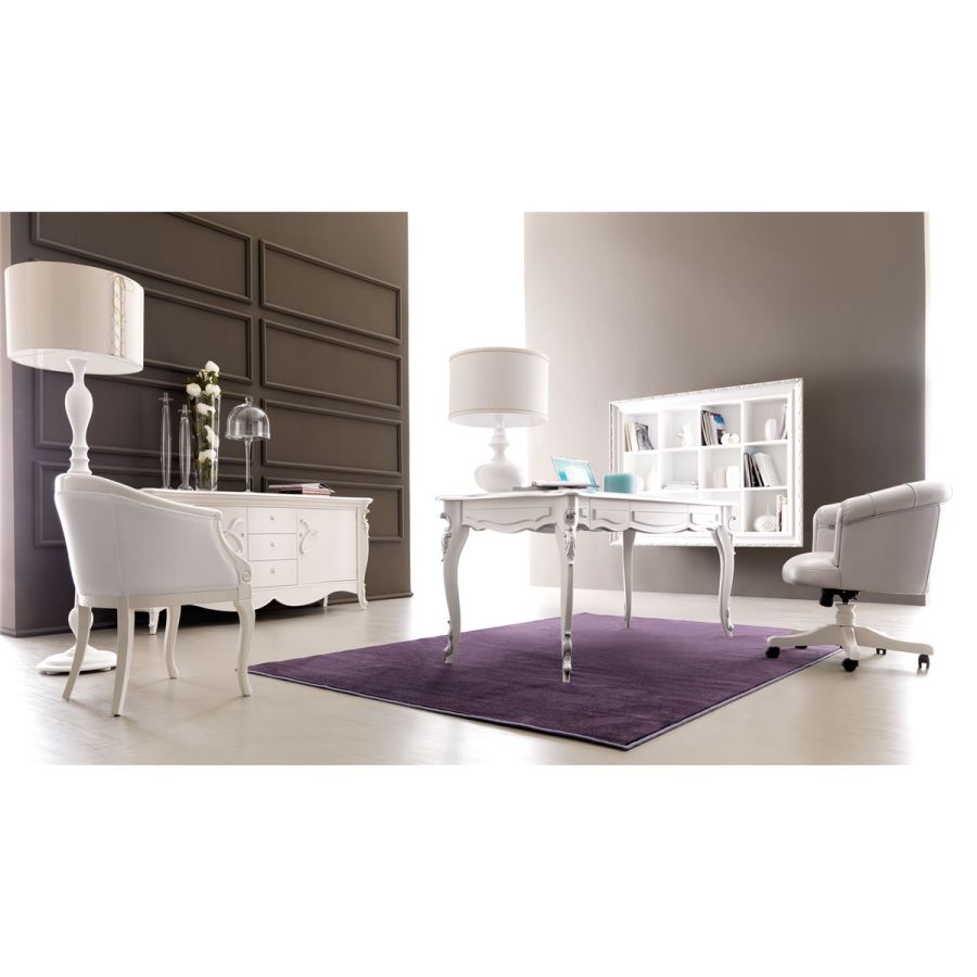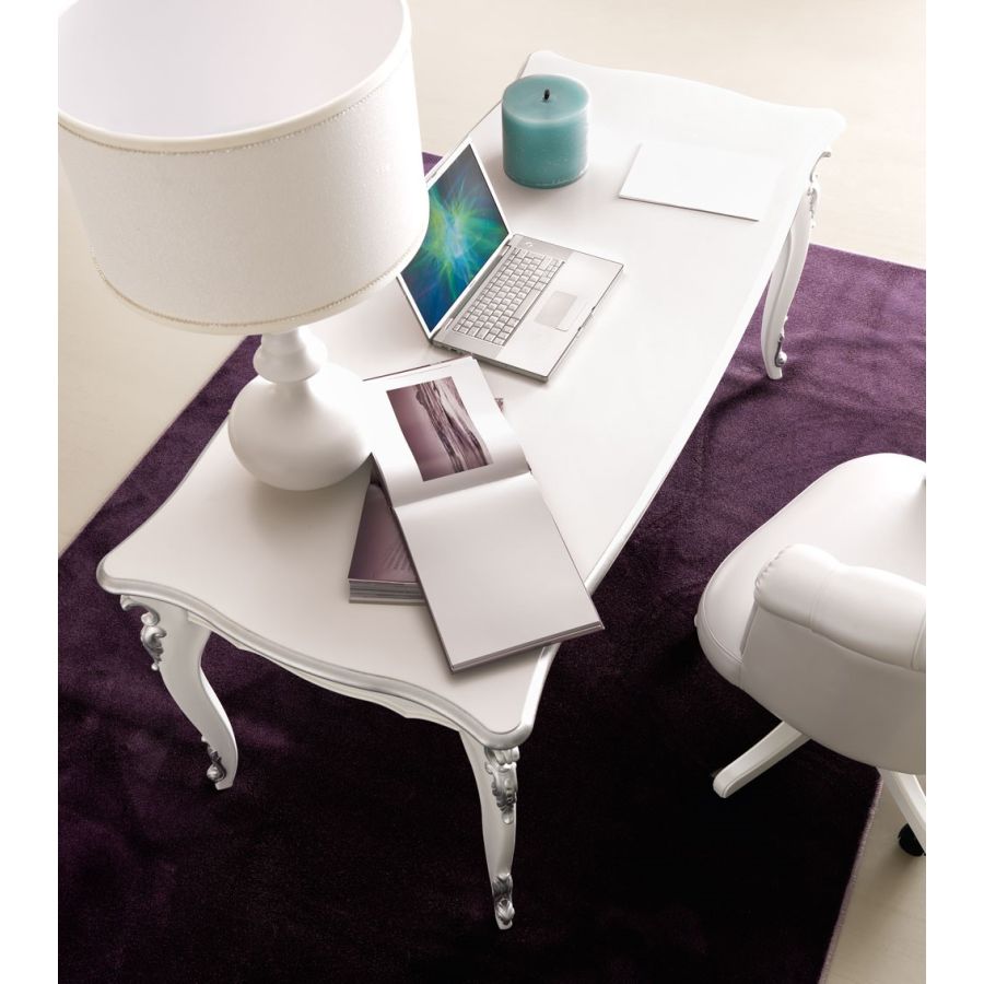 Solid limewood legs with hand shaped carvings. Mdf top. Birch plywood drawers. A refined collection inspired to classic patterns. The use of carvings on the massive wooden structure, typical of the Renaissance, gives a refined and precious effect. Thewriting desk, available in 2 different sizes, decorate with style and refinement classic or contemporary interiors, thanks to the offer of a wide palette of finishings.