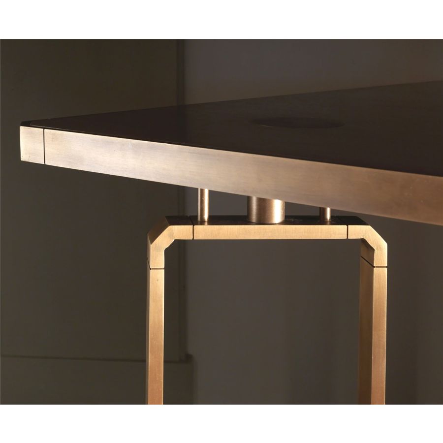 Dining Table in Brass with Wood Top HF2076TA Domino by Officina Ciani
