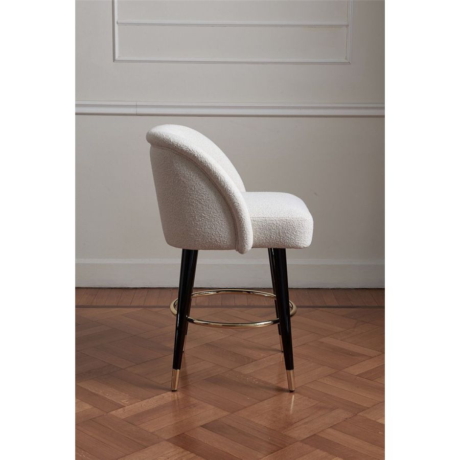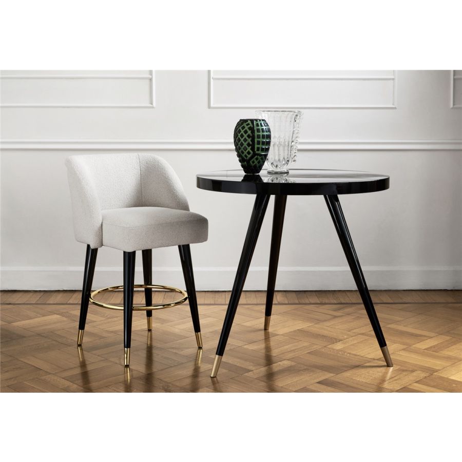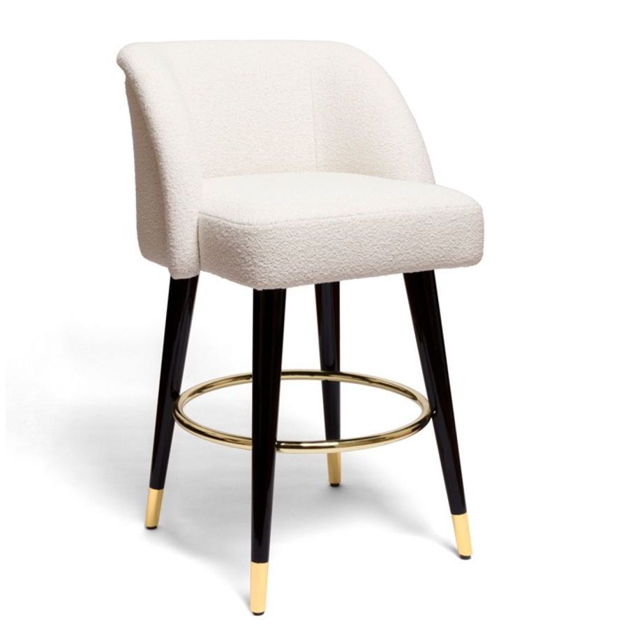 Sätet är helt klätt i tyg, med en sittdyna. Träbenen är matt- eller blanklackade. Metallspetsar och metallfotstöd i blank mässing/ satinmässing/ blank krom/ brons/ tenn/ mattbrons.