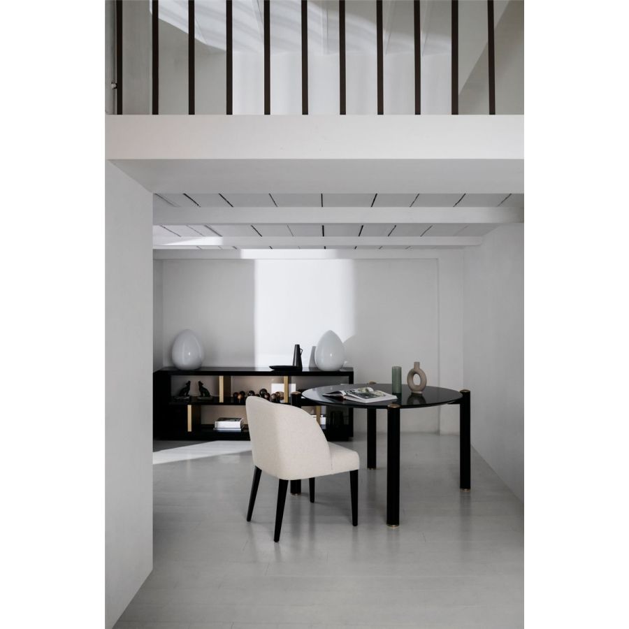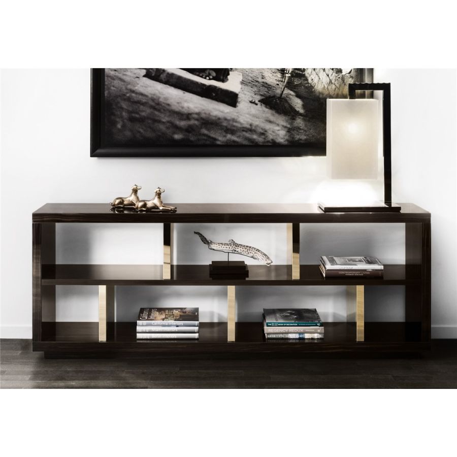The Sloane bookcase is available in gloss or mat lacquered in a wide color range or in gloss or mat makassar ebony veneered. The metal dividers are available in gloss brass, gloss chrome, bronze, satin brass, pewter or cloudy bronze.| Mått (HxBxD): | cm: 75x212x40 / inch: 29.53"x83.46"x15.75" |