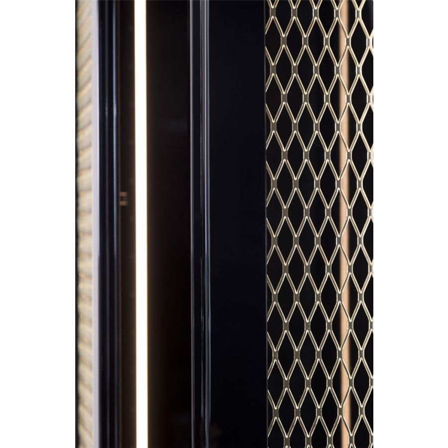 Soho-skåpet finns i blank eller matt lack och levereras med metallgaller i blank mässing, satinerad mässing, brons och blank krom. Innerhyllor finns i bronsat glas, klart transparent eller fumè. Glasdörrarna bakom metallgallren finns i spegel, bronsat, fumè eller klart transparent.| Mått (HxBxD): | cm: 222x88x44 / inch: 87.4"x34.65"x17.32" |