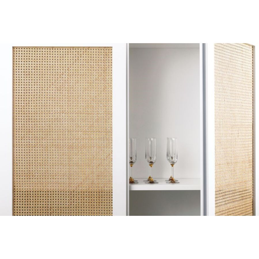 Quisisana Basso-skåpet har en mattlackerad stomme (vit/elfenben/svart) med Vienna straw-dörrar. Invändigt mattlackerad har Quisisana Basso 4 dörrar och levereras med 2 interna hyllor i varje fack.