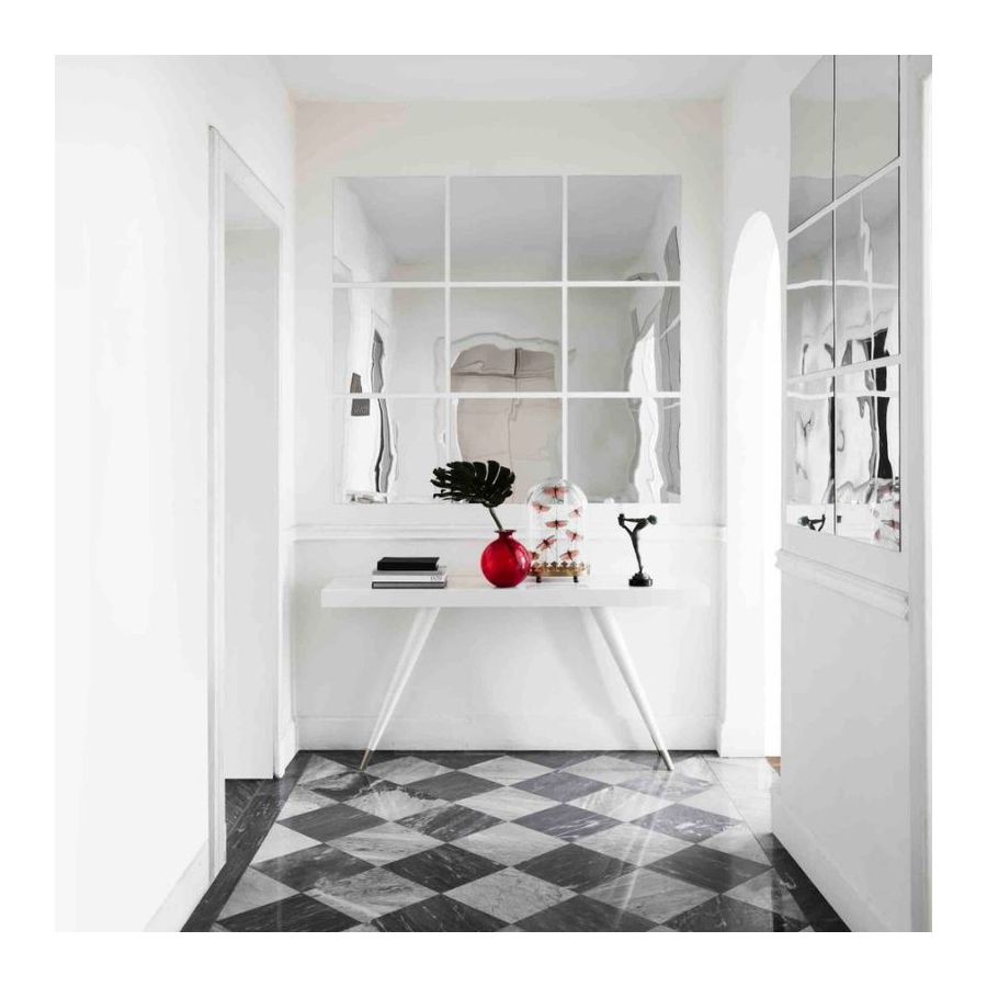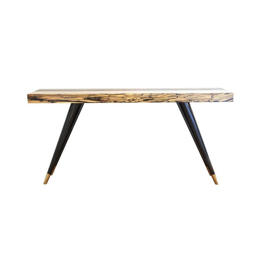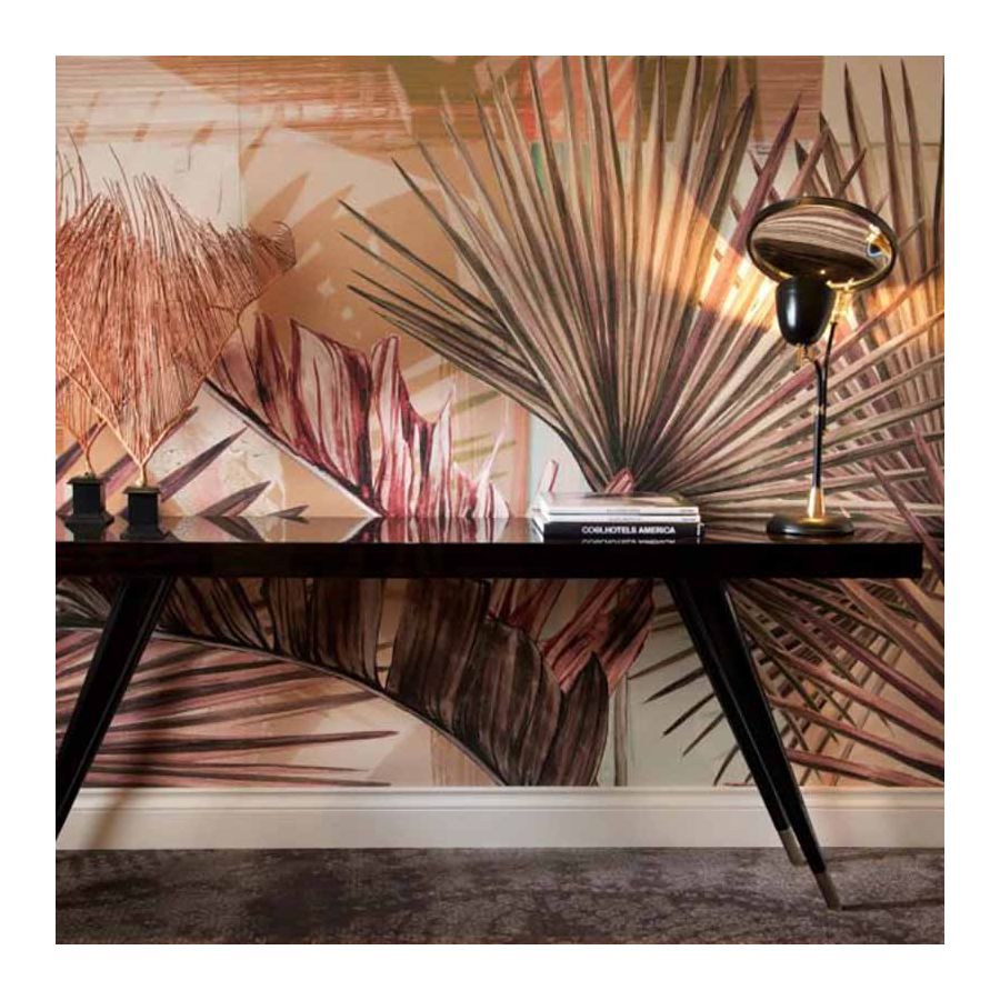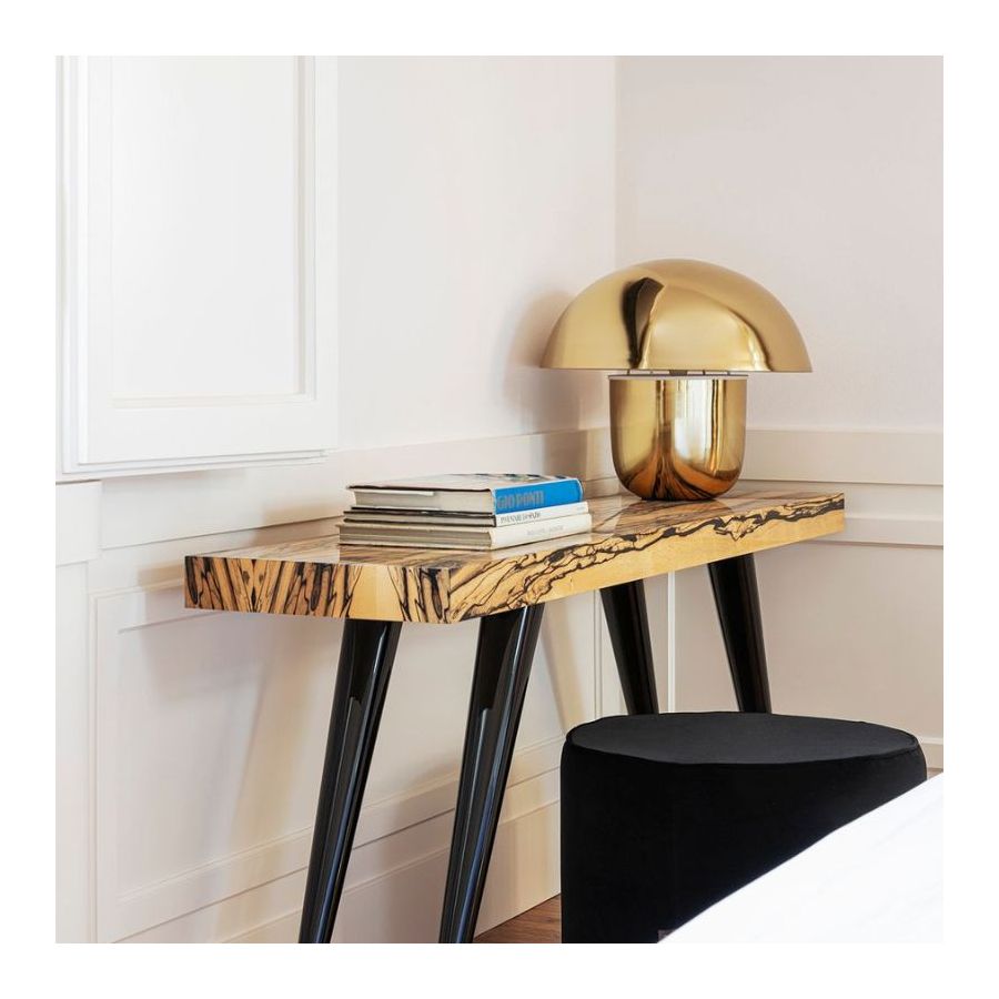 Andrea-konsolen föddes ur matbordet Andrea. Toppen finns lackad eller fanerad i blank eller matt Makassar-ebenholt, blank lönn i lera eller natur, blank albinträfaner och stöds av fyra koniska ben som är placerade i en perfekt, balanserad vinkel.