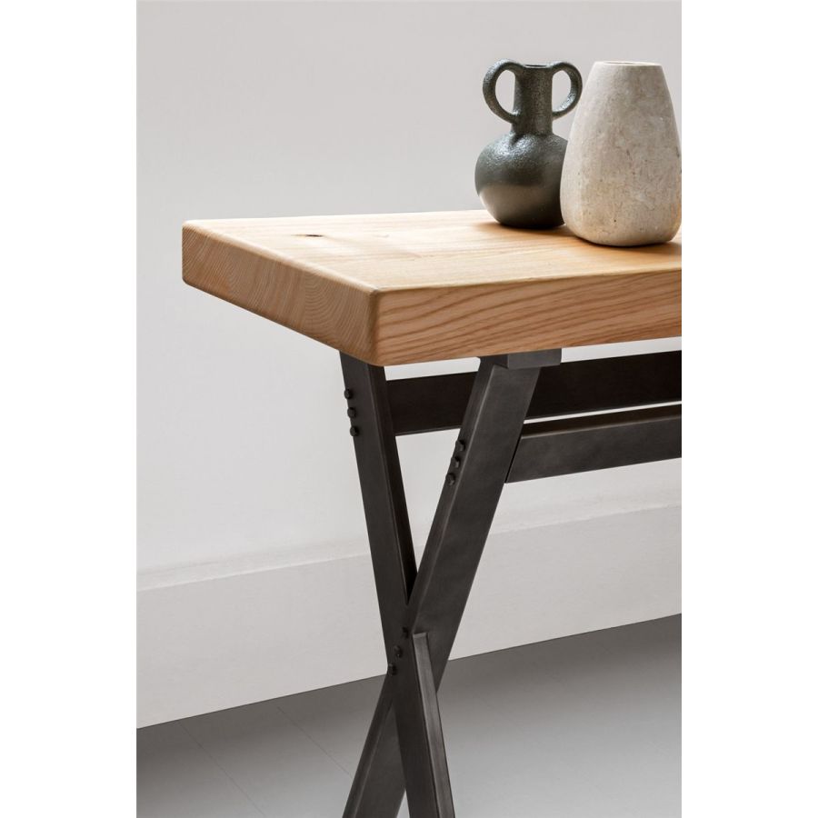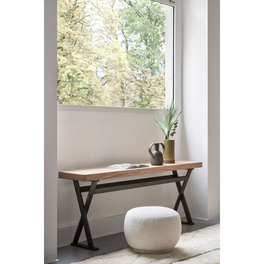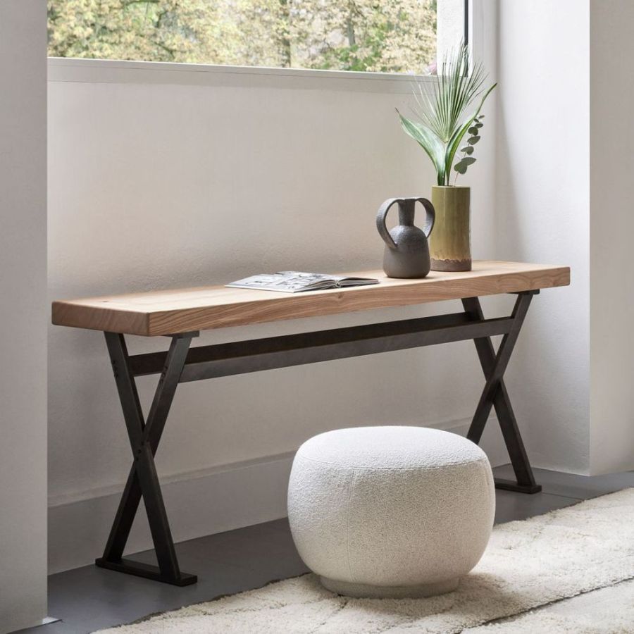 En modern känsla och en skräddarteknik, det traditionella italienska hantverket förenas med modern och samtida design och ger Benjamin-konsolen liv. Ett stilspel mellan den korsade metallbasen, med en fräsch och naturlig smak, och den rektangulära massiva träskivan, med lätt rundade hörn. Benjamin beskriver det dyrbara hos ett livligt, organiskt material som tilltalar både ögat och känseln. Konsolen finner också ett framgångsrikt självuttryck i formen av ett bord: Benjamin matbord.