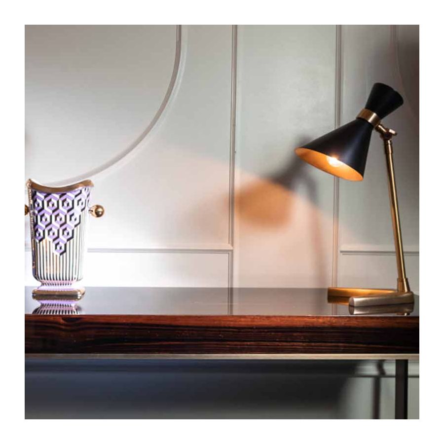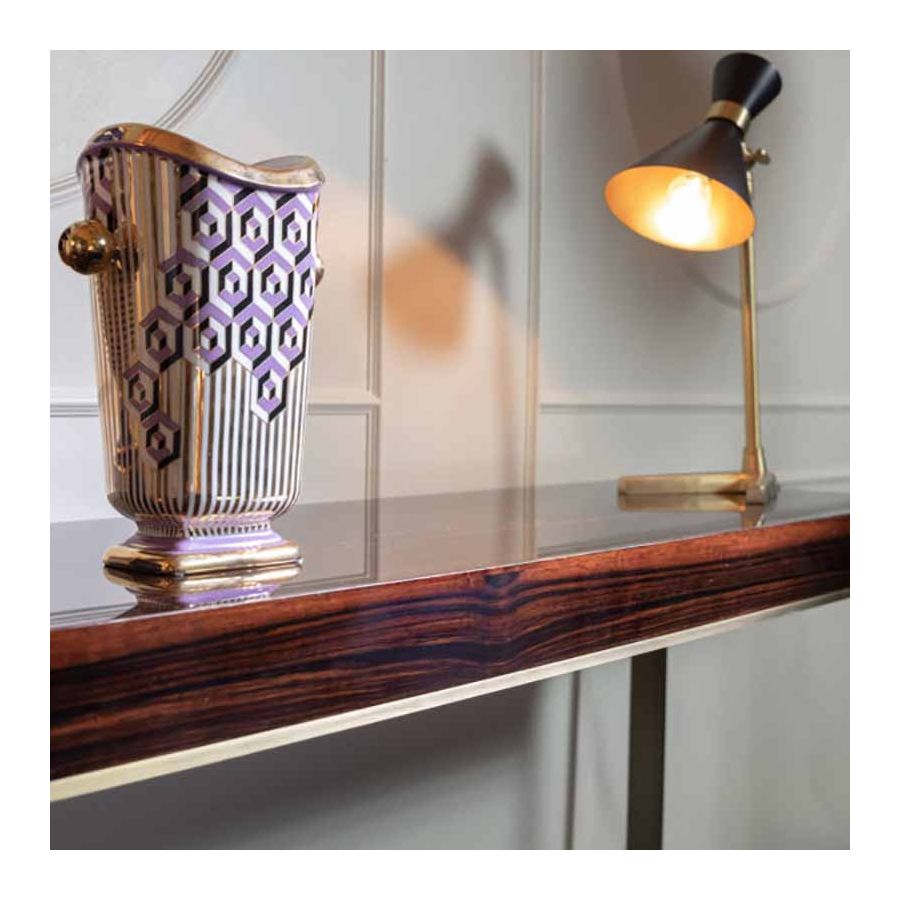 Toppen finns tillgänglig i matt eller blank lack, matt eller blank Makassar-ebenholtsfanér, blank lera/naturlig lönn eller blank Albin-träfanér. Metallbas: blank mässing/ blank krom / brons/ satinmässing/ tenn/ molnig brons.