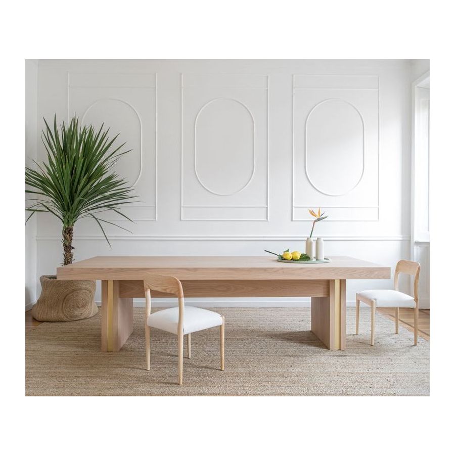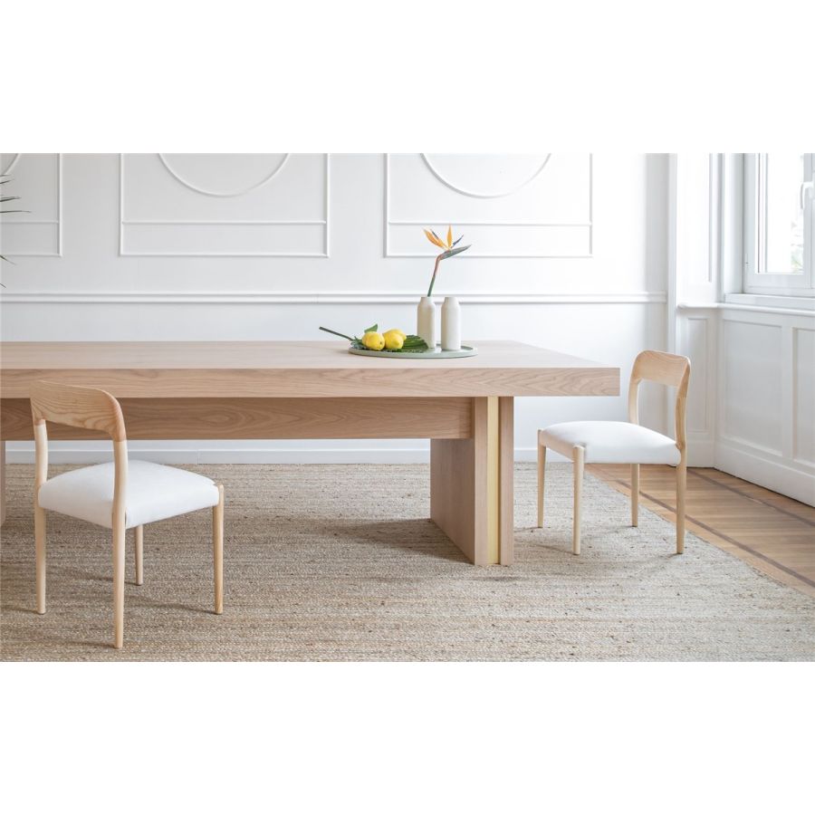 Ett förfinat resultat av italiensk hantverksskicklighet i kombination med platser som inspirerar, Saint Tropez-matbordet förenar naturligt trä med samtida design på ett perfekt sätt. Dess raka linjer och trästruktur förhöjs av en delikat men iögonfallande vertikal metalldetalj, vilket tillför ett element av förfinad sofistikering till varje matsal.