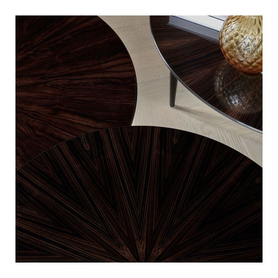 A light small table with ebony or glossy black lacquered top, available in gueridon and coffee versions. Perfect for elegant and sophisticated spaces.