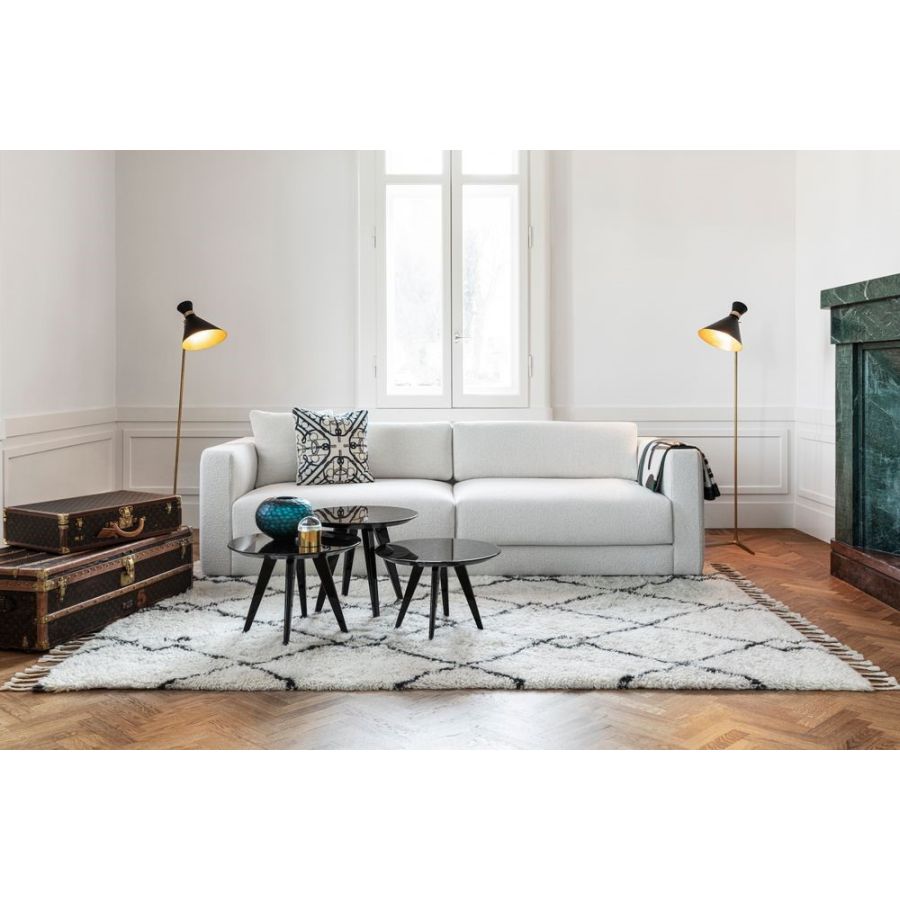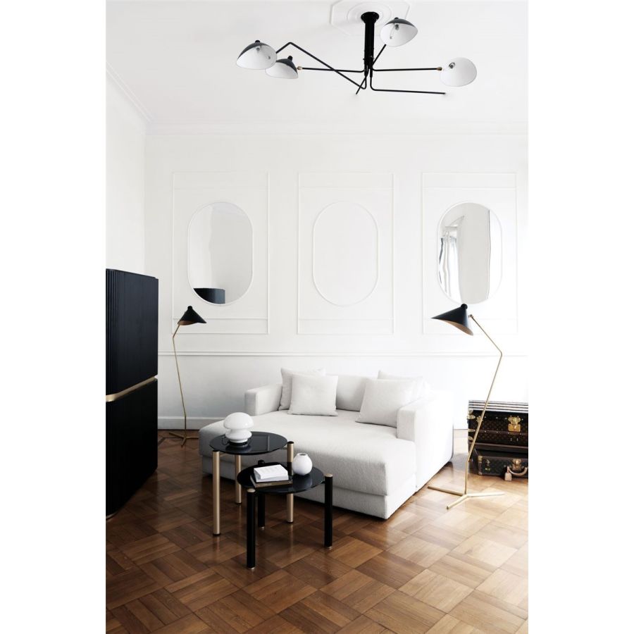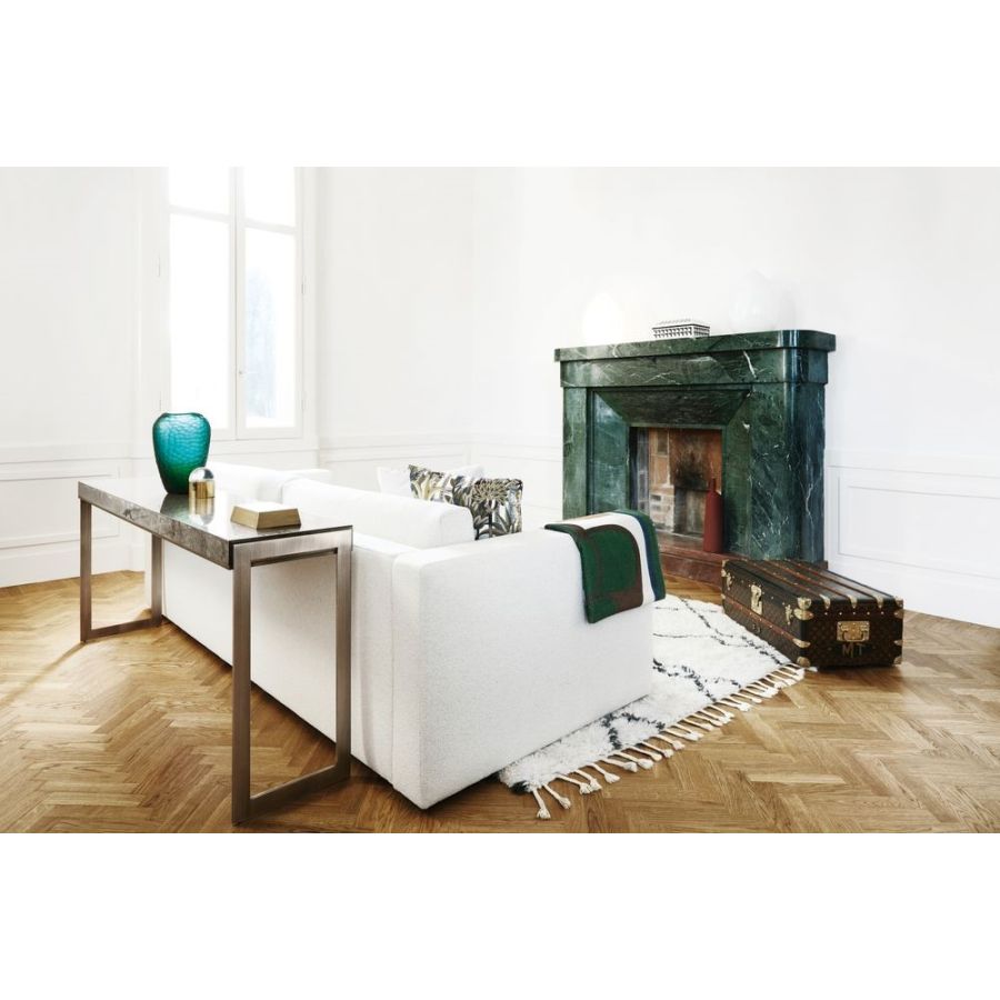 Denna soffa med rena linjer kommer att utgöra ett fläckfritt tillskott till ett modernt privat arbetsrum eller en ljust tonad loungeyta tack vare sitt eteriska, nästan aseptiska uttryck. Helt klädd i ett strukturerat tyg för en utsökt taktil känsla, har den en modulär natur för att skapa skräddarsydda lösningar som enkelt kan passa in i alla utrymmen. Den generösa stoppningen säkerställer tidlös komfort.