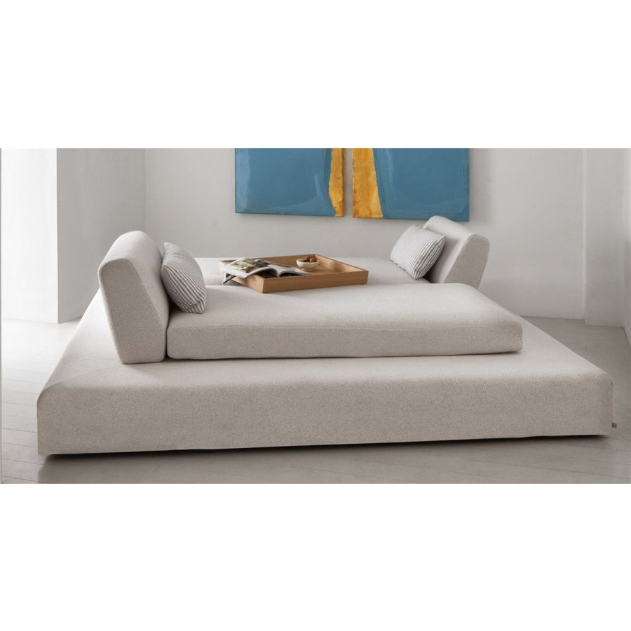 Ogygia dormeuse attraherar och låter sig inte lätt överges. Den kan komponeras och sättas ihop igen, genom att flytta ryggstöden från ena änden till den andra, växla från vis-à-vis-konfigurationen som inbjuder till samtal till sida vid sida-kompositionen, för att titta på en föreställning eller läsa tillsammans. Öppen för alla funktioner, förkroppsligar den perfekt en anda av frihet och dagdrömmeri.