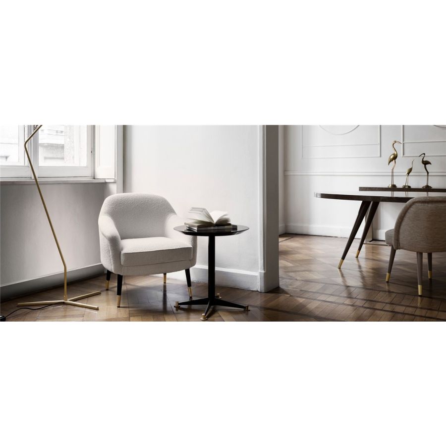 Filippo Tea litet bord är mötet mellan elegans och en diskret informell karaktär: bordsskivan vilar på en piedestal med enkla och pålitliga linjer som fötterna på en designad månlandare. Filippo inreder med självförtroende och en klar känsla för proportion.