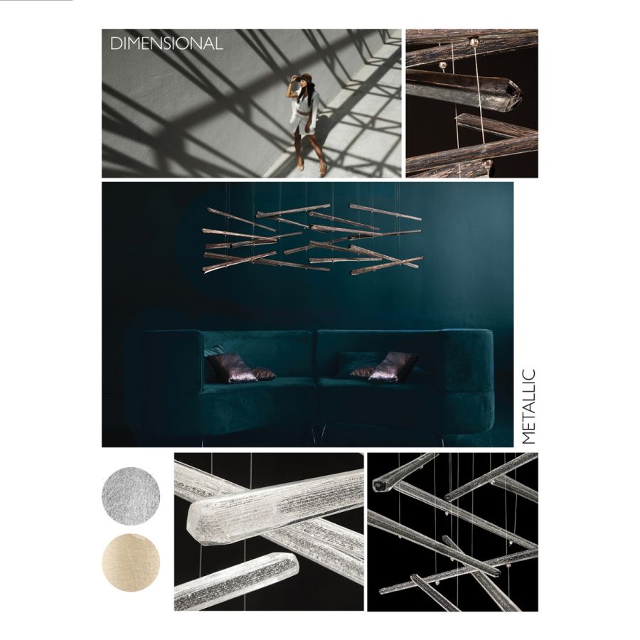 Elevate raises your environment to new heights. Each “plume” is handblown and sculpted with a translucent mixture of clear crystal and opaline glass accented by our signature dichroic glass, creating a shimmer of color in each ray of light.