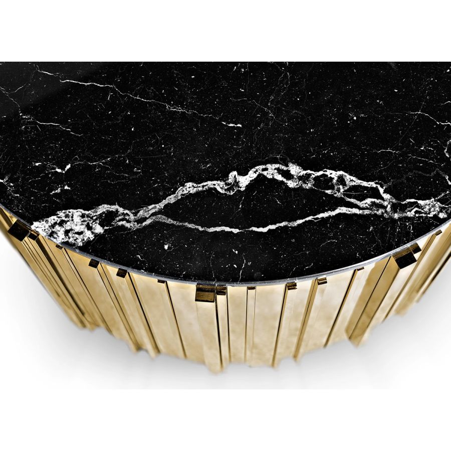 The Empire Center Table epitomizes elegance and style with its iconic lines. Carefully made with brass and Nero Marquina marble, this centerpiece seamlessly combines classic and modern design elements. Perfect for any interior setting, this round table is a true embodiment of timeless elegance, destined to enhance the allure of your space.