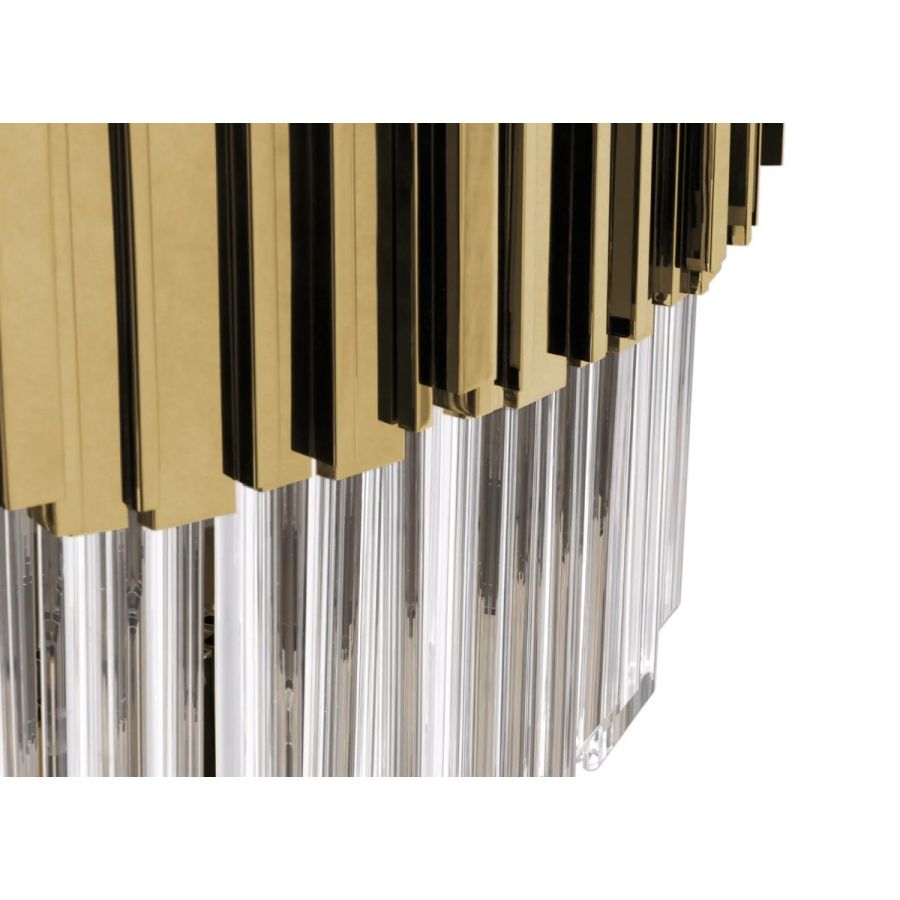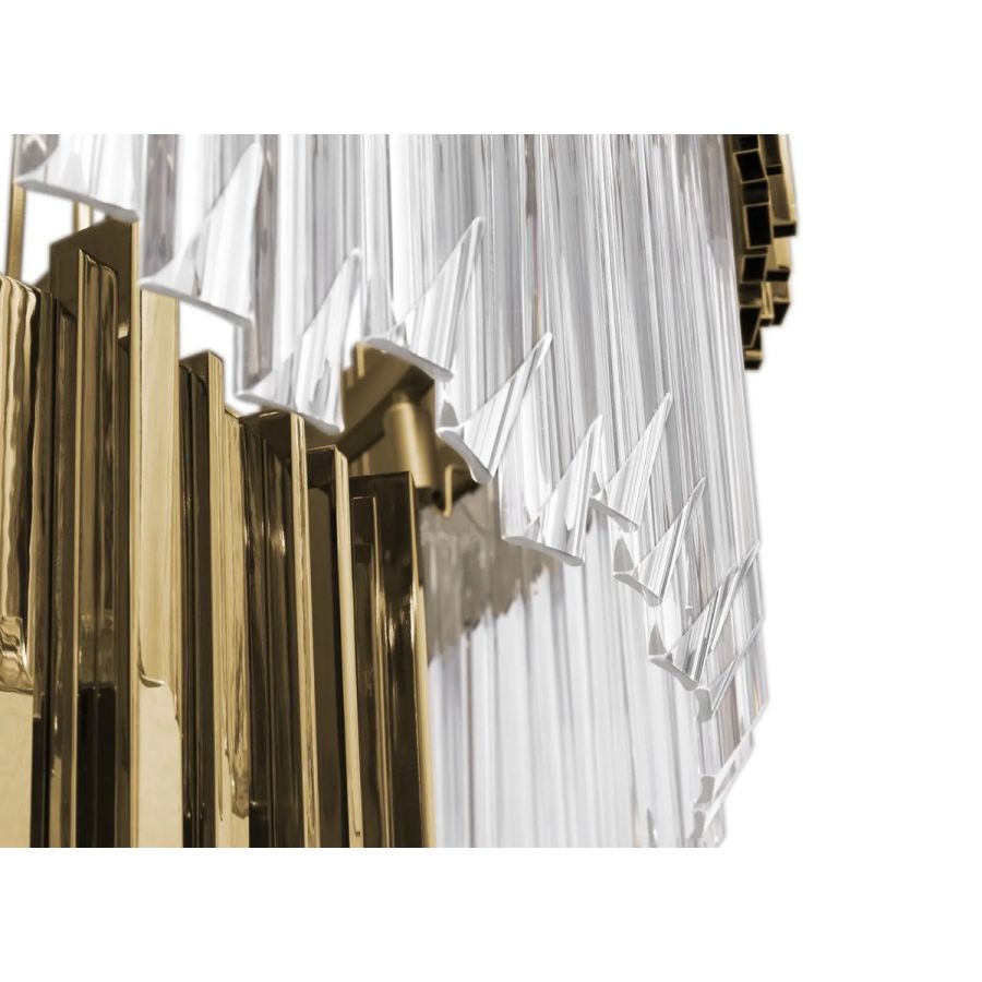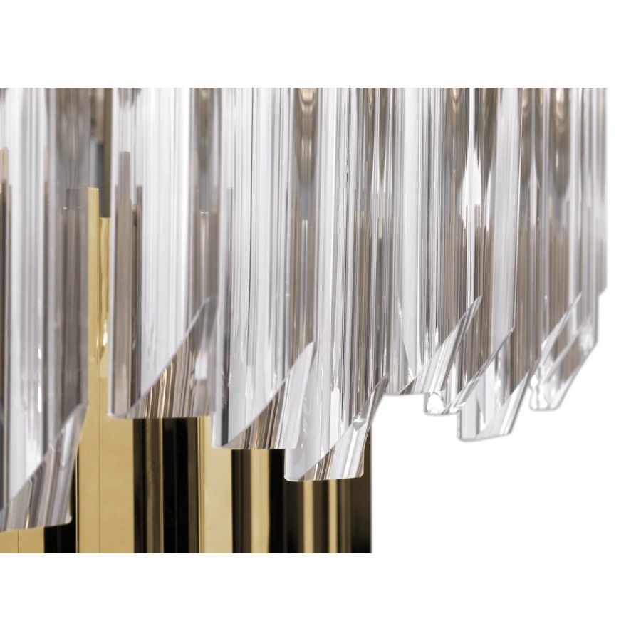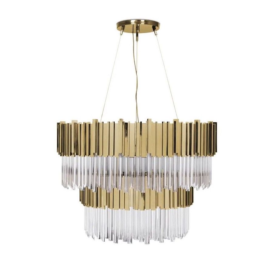 The Empire II Suspension Lamp draws its majestic form from the iconic Empire collection, embodying a flawless fusion of classic grandeur and modern sophistication. Composed of layered gold-plated brass and vintage-style crystal glass, this extravagant piece becomes the centerpiece of any room it inhabits — exuding glamour from every angle.
