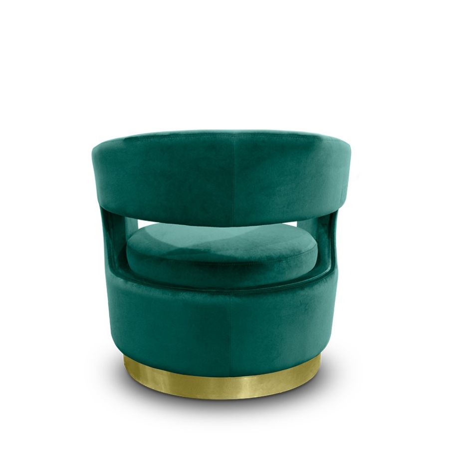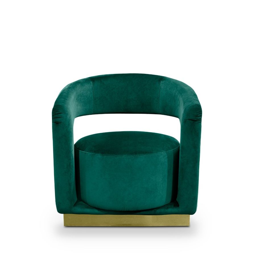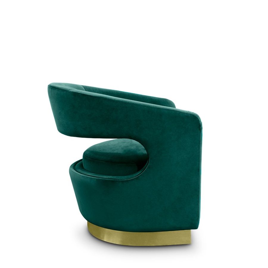Ellen is a sophisticated armchair featuring a modern tub design mixing contemporary and mid-century styles. Built on top of a metal base, this accent chair is upholstered with luxurious fabric, a round open back and cylindrical seat, perfect for those nostalgic retro lovers that can't miss out on the vintage details.