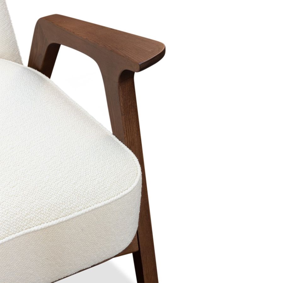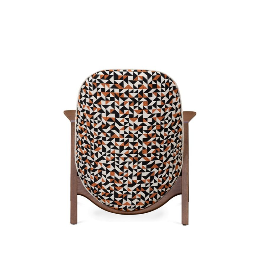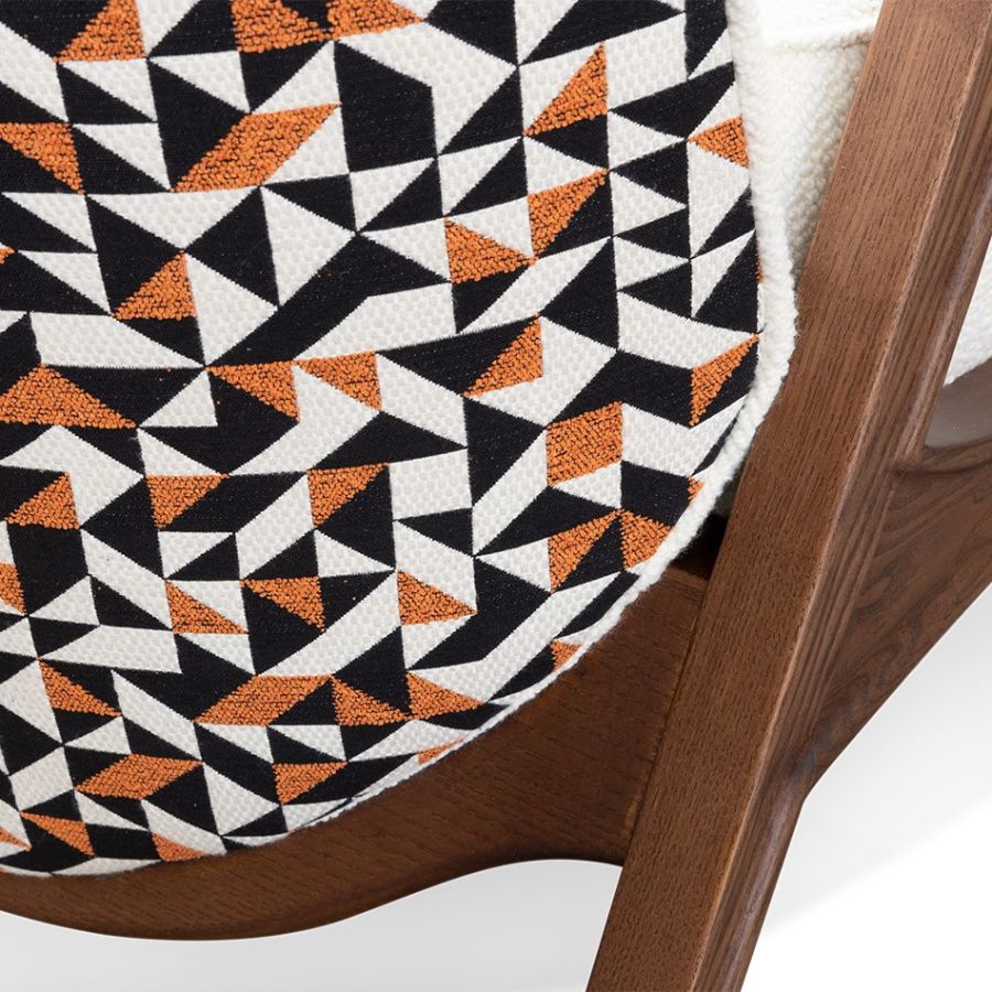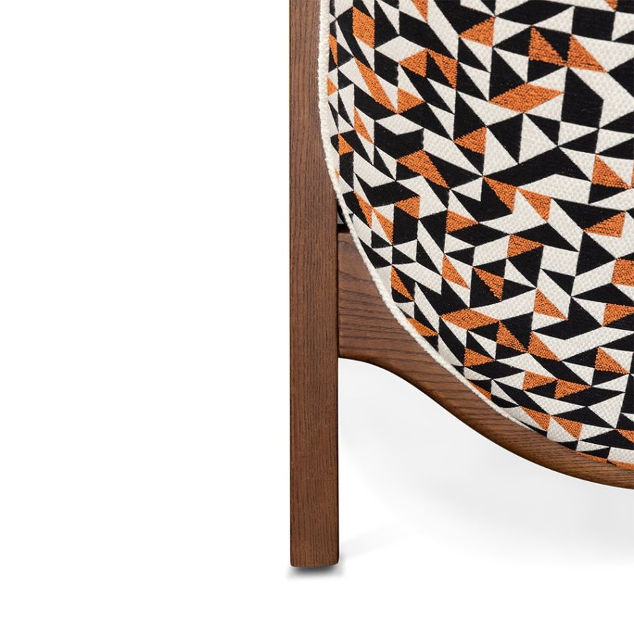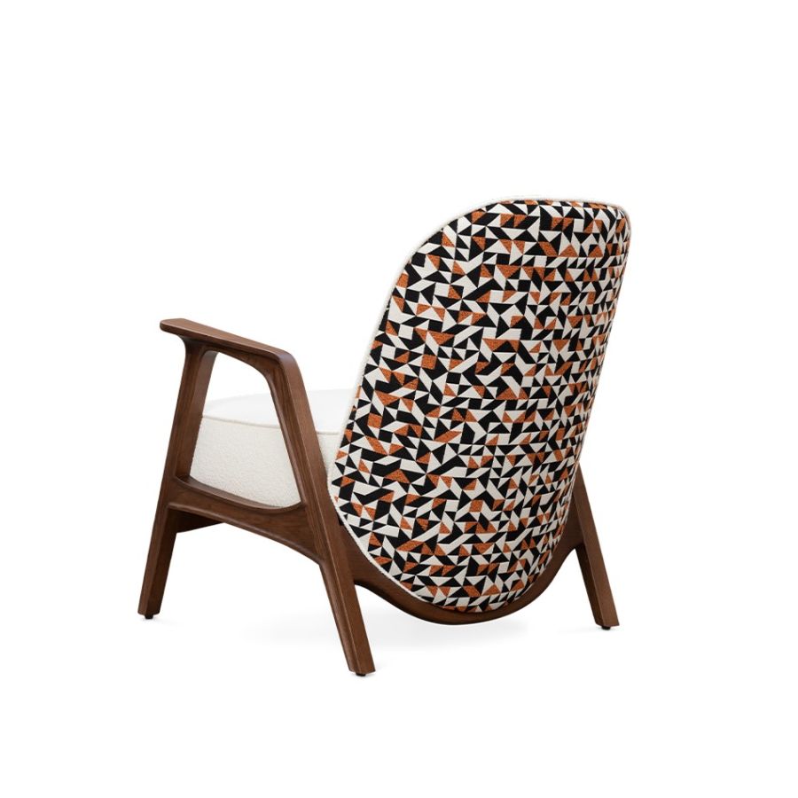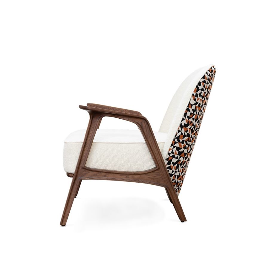 Hadley Armchair reflects the best of the 1930s midcentury style, bringing a feeling of timeless refinement that only a design so flawless could accomplish. Wooden legs and armrests pair wonderfully with a customizable fabric for the seat and pattern on the back that reminds us of the joys that art deco and vintage can bring into our homes.