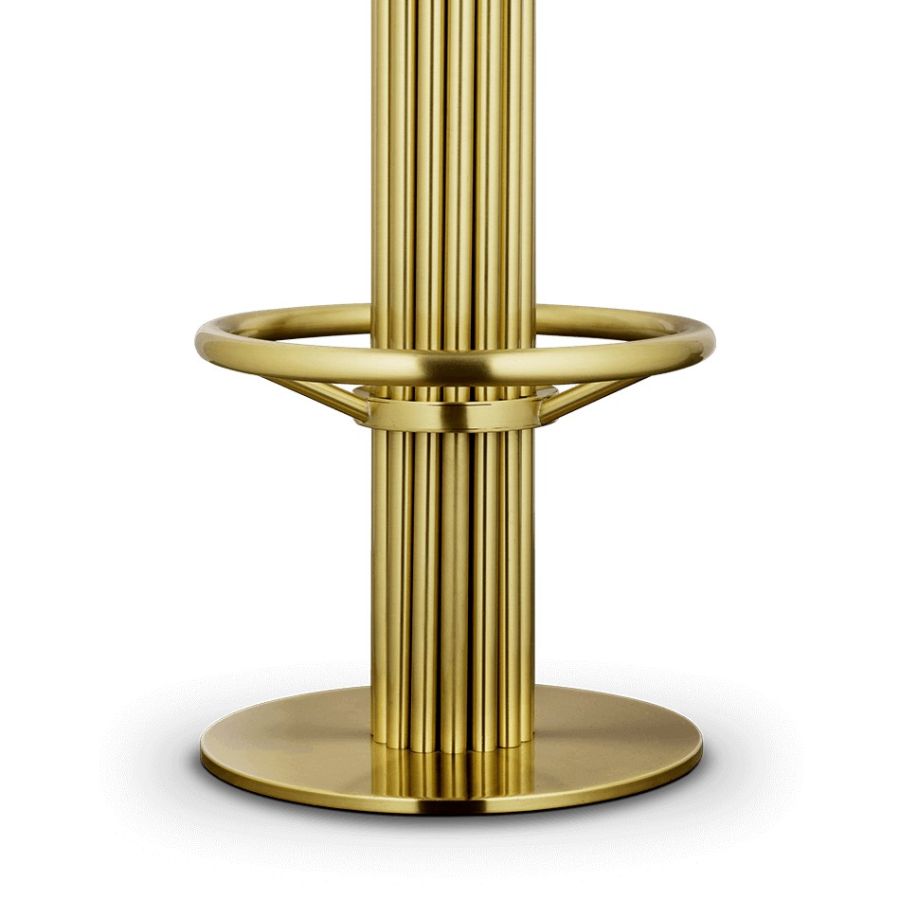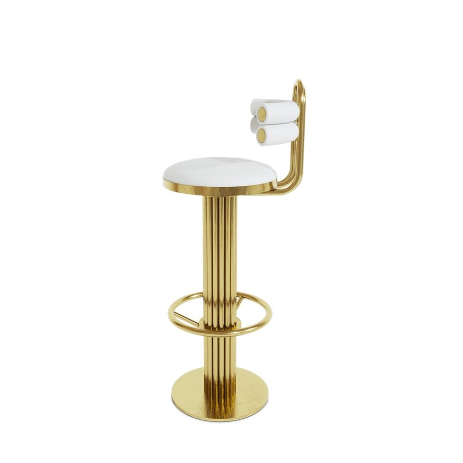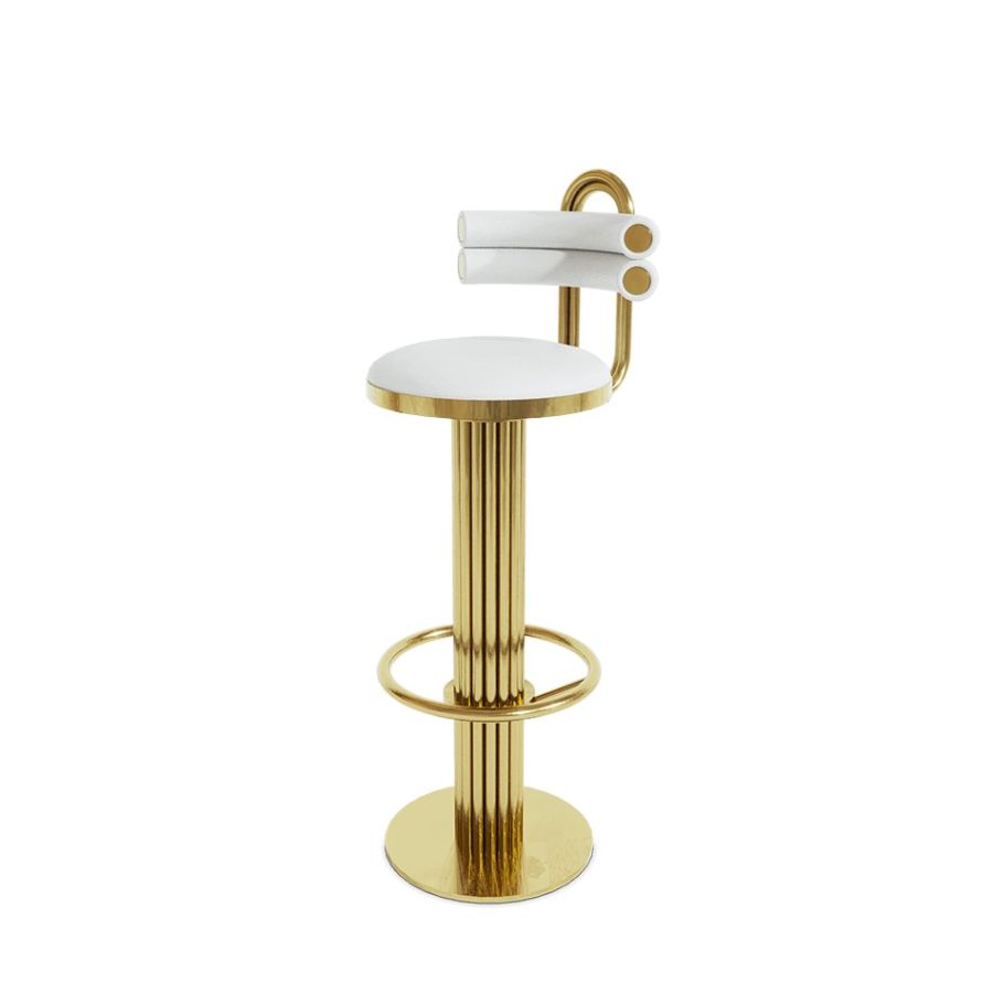 The Kelly Demilune chair draws inspiration from the sculpted arches of the classic movie Casablanca's bar. With tubular back seat and luxurious metal details, it's a timeless and unforgettable piece. This unique bar chair embraces its leading role in our modern product selection, offering creative round shapes and multiple customization options.