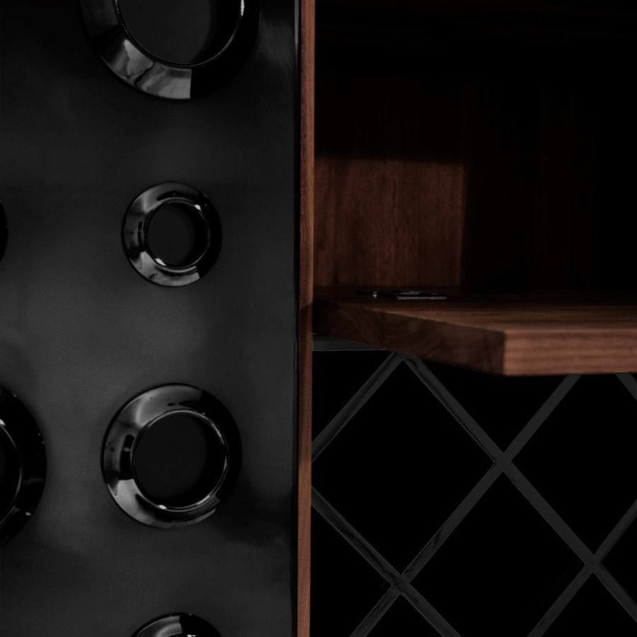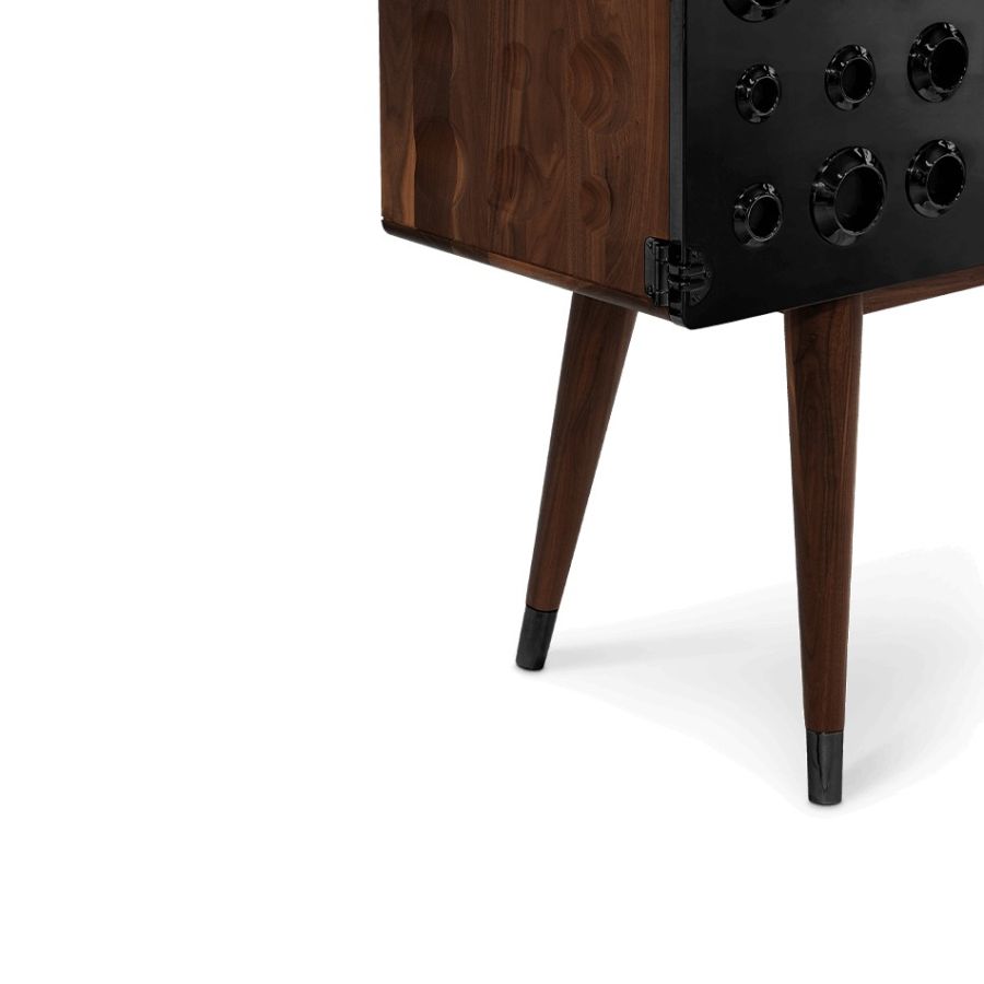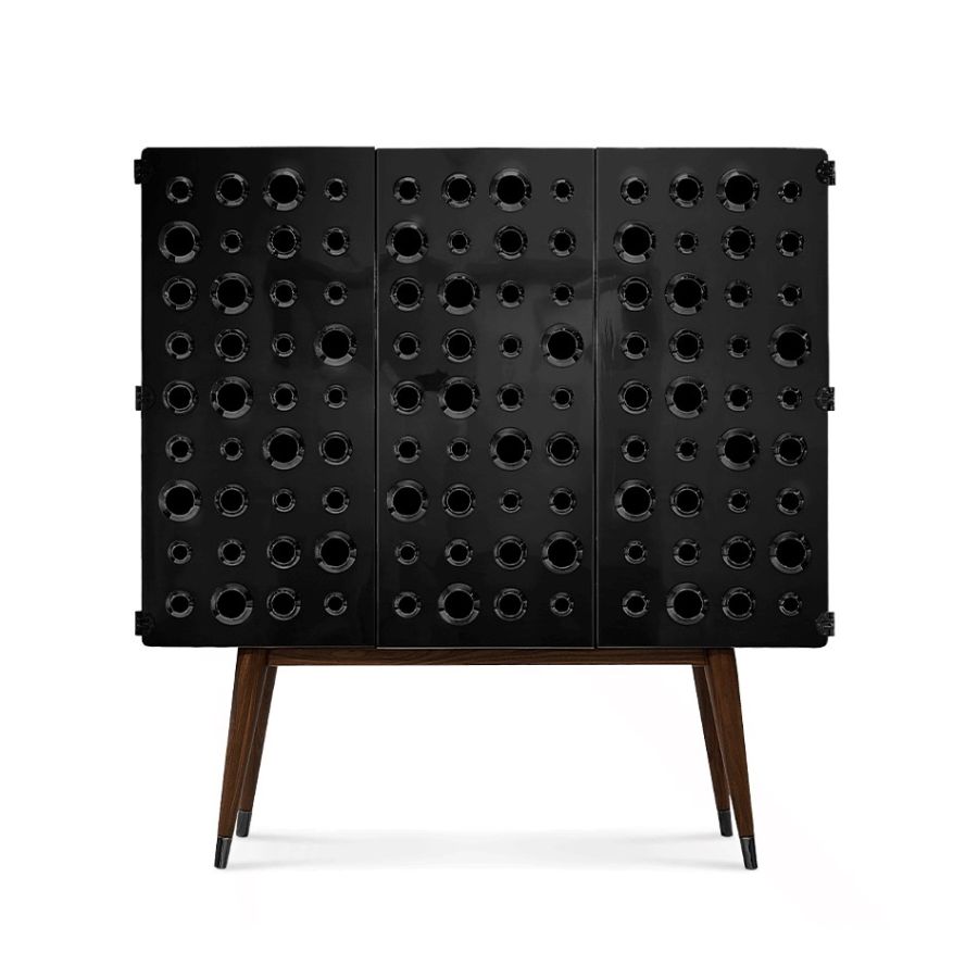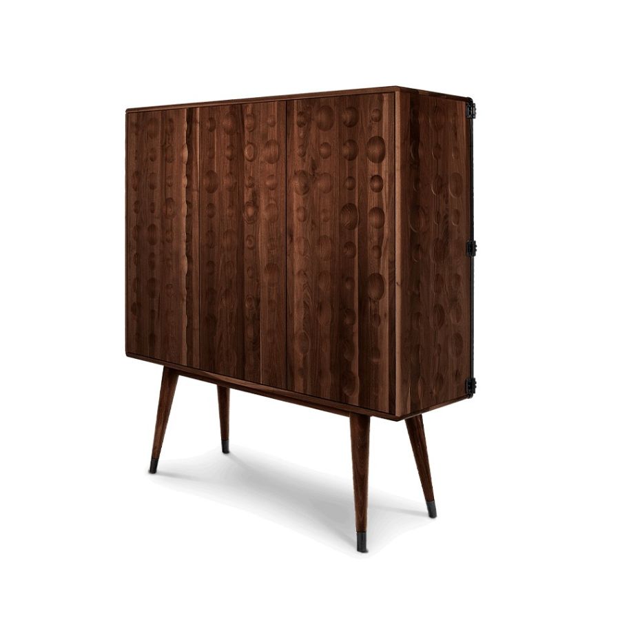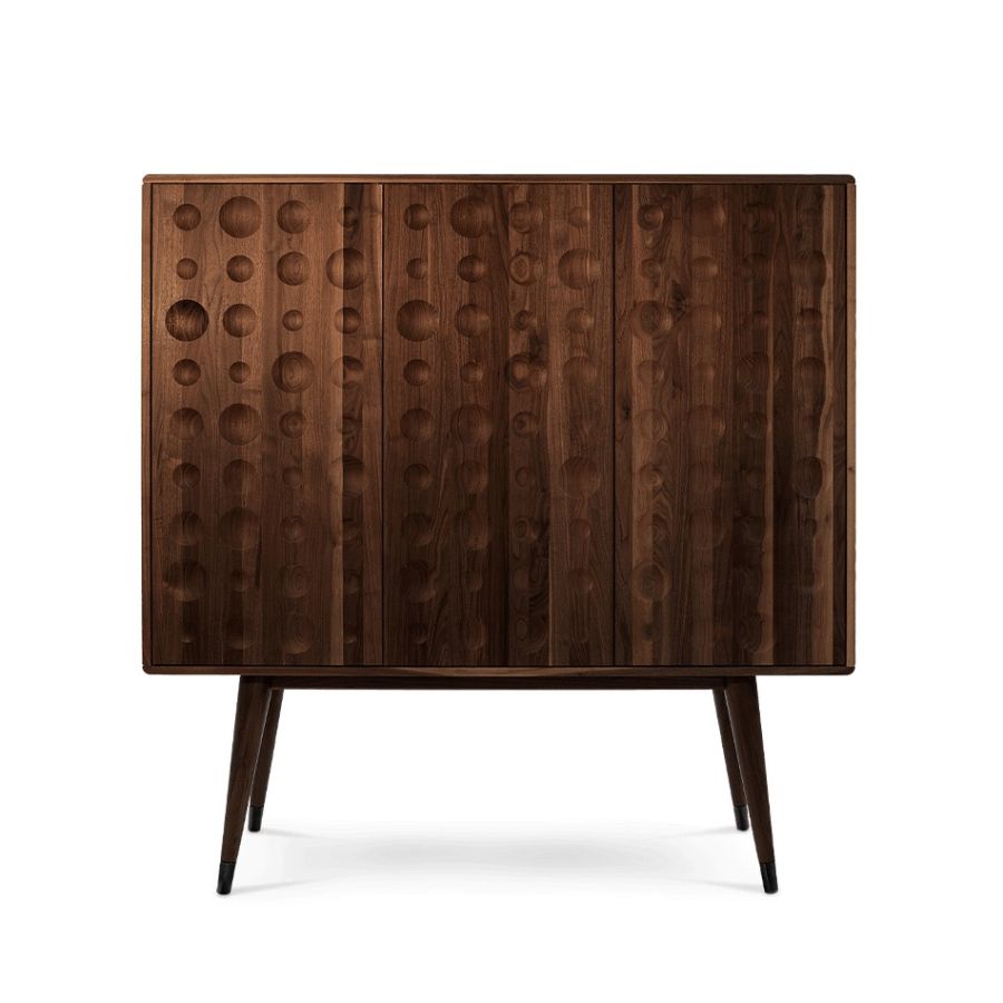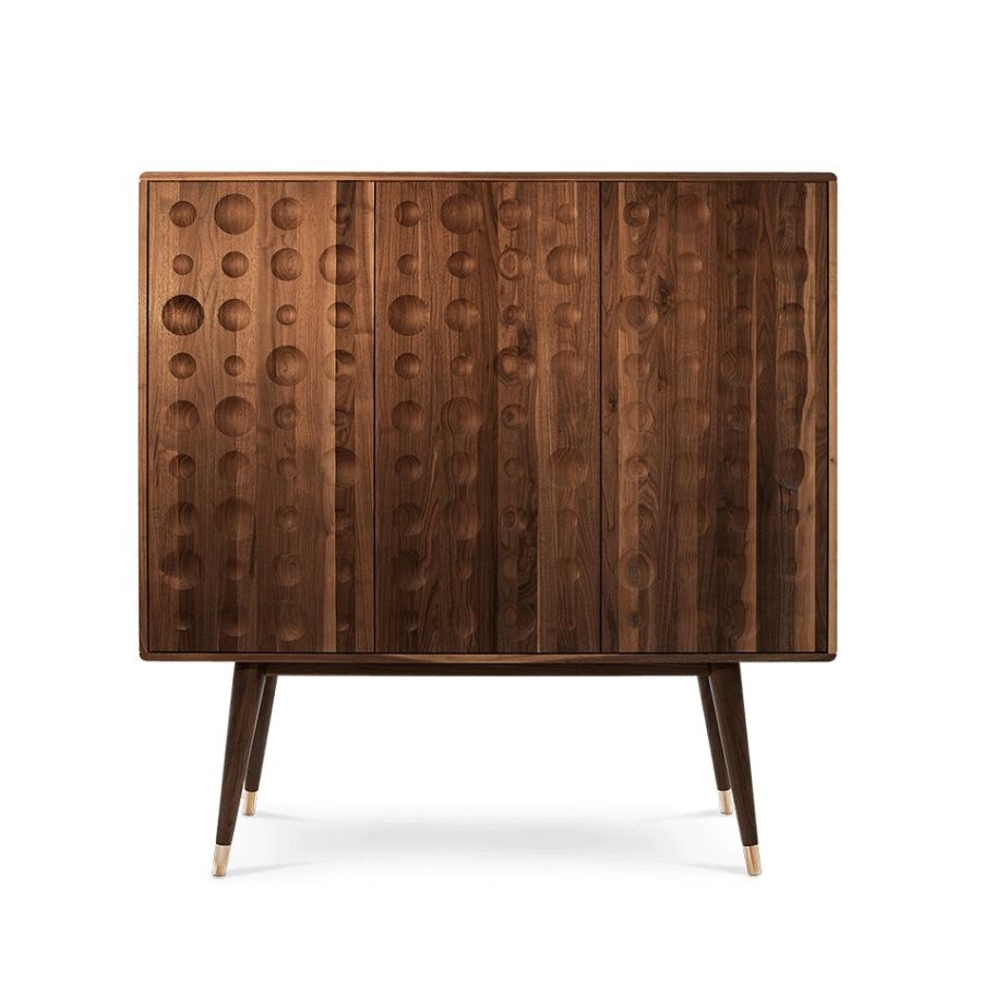 A drinks cabinet with a fresh and sleek look, Monocles Cabinet combines style and functionality. Protruding circles of different sizes at the front showing that a calculated imperfection goes a long way in design. You'll find yourself taken back in time as soon as you look at this piece.