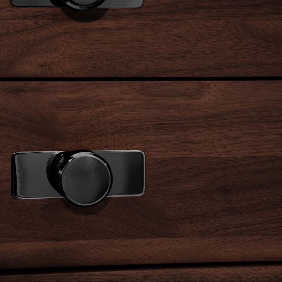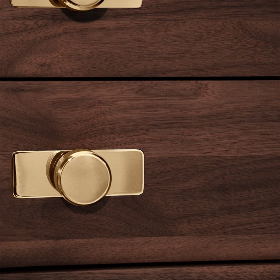 | Standard finishes | Polished gold-plated brass; Solid walnut (matte); Matte black lacquer |