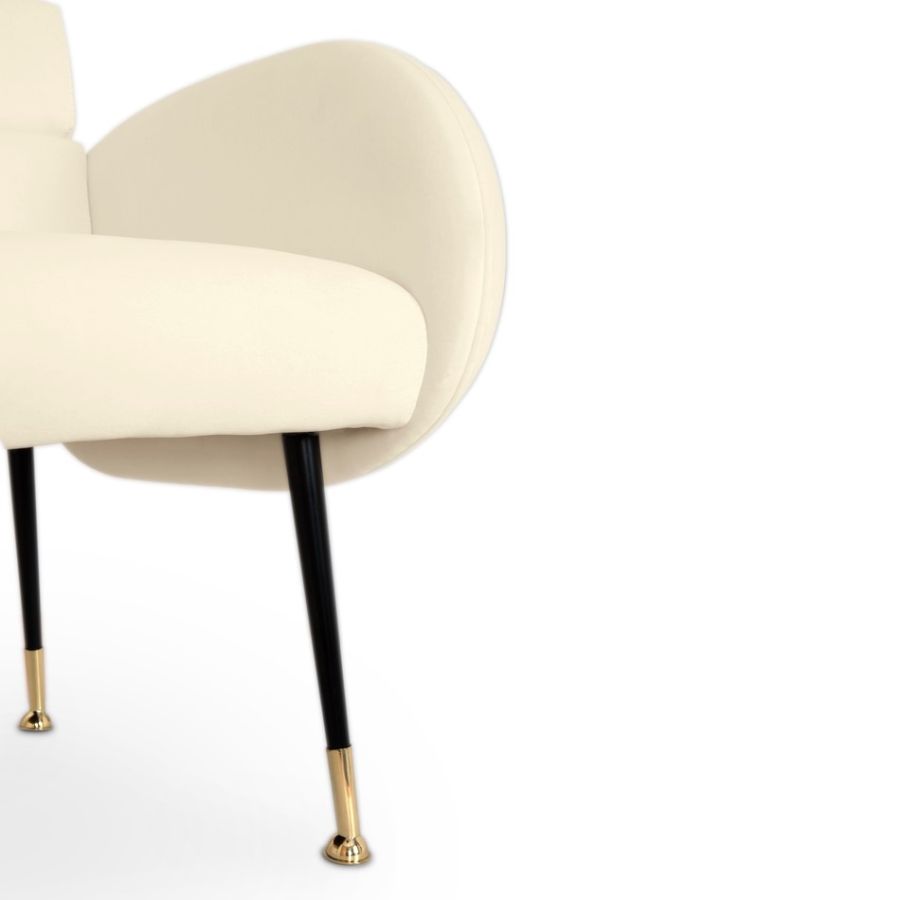 This dining chair from the mid-century inspired Marco collection is perfect for a luxurious dining room setting. With glossy legs and metallic feet, round shaped arms, and handmade luxurious elements, Marco dining chair offers both style and comfort for your feasts, following the tradition of Essential Home's finest bestsellers.