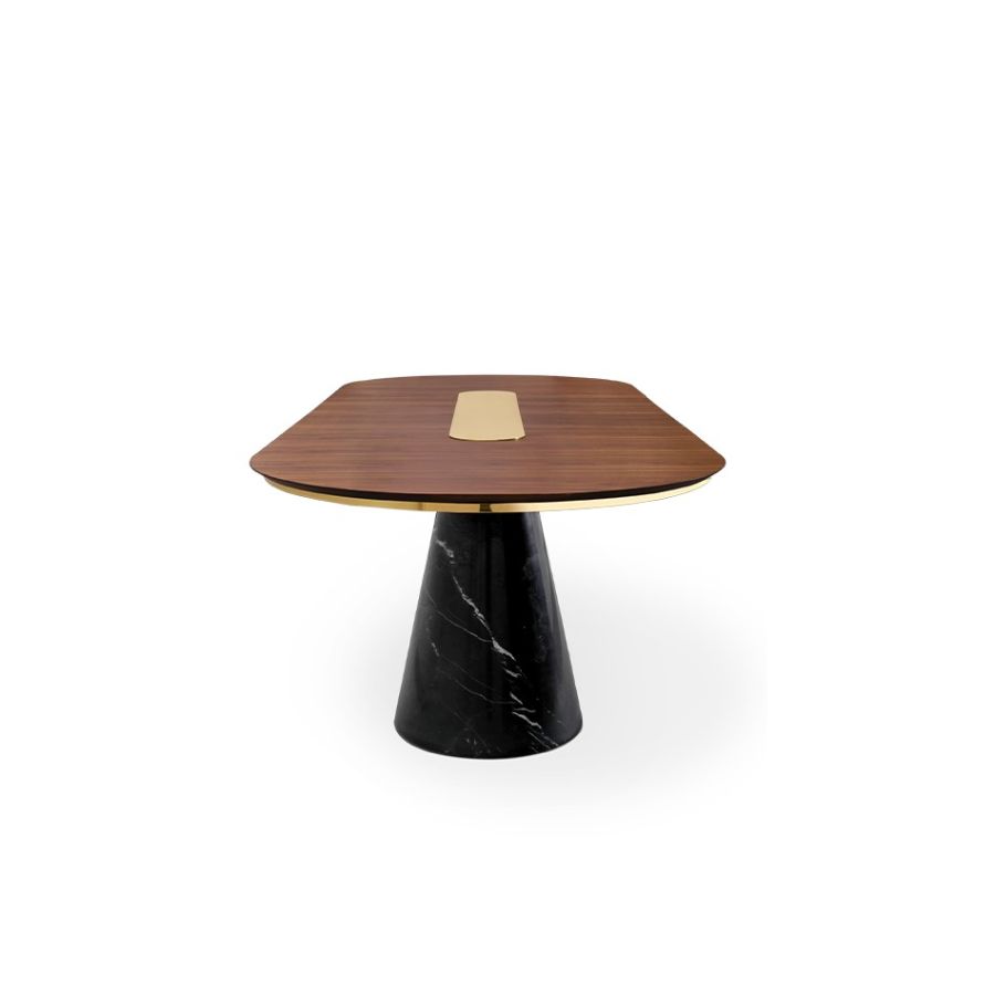 A modern dining table with capacity for 8 people, Bertoia is a majestic statement piece for any dining room. Refined solid marble, enhanced by a metal ring on the countertop. Curated trendy materials, a stunning homage to design. Perfect for your home decor, guaranteed to stun.