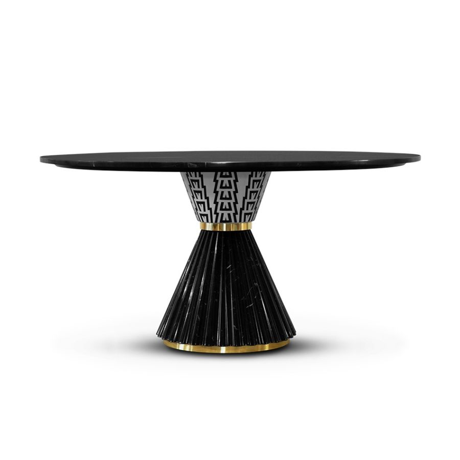 Sidney Dining Table is a luxury solution for any modern home or design project. With contrasting materials, this dining table will add that artistic flare to any dining room. WIth metallic details and a marble top, this round table is a perfect addition to your home, especially if you're working with other art deco and mid-century furniture.