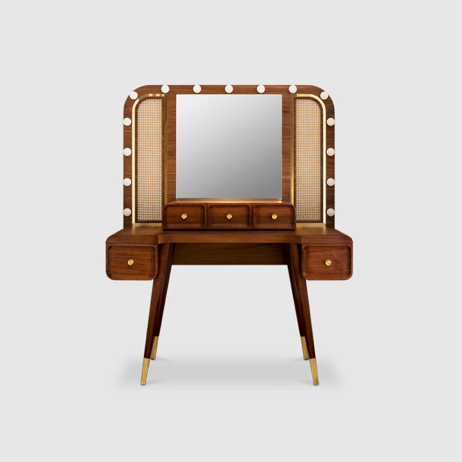 | Standard finishes | Solid Walnut Matte, Rattan, Polished Brass, Clear Mirror, Bulbs |