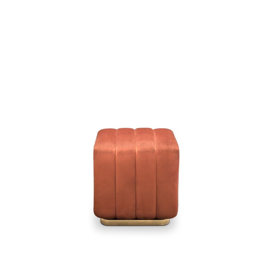 A curvy and colorful stool that is practical and comfortable.A splash of colorIt is a body of solid wood upholstered in classy velvet and wood exposed on the sides. This tiny cube with rounded edges is very comfortable and is an easy way of adding a little splash of color to your ambience.