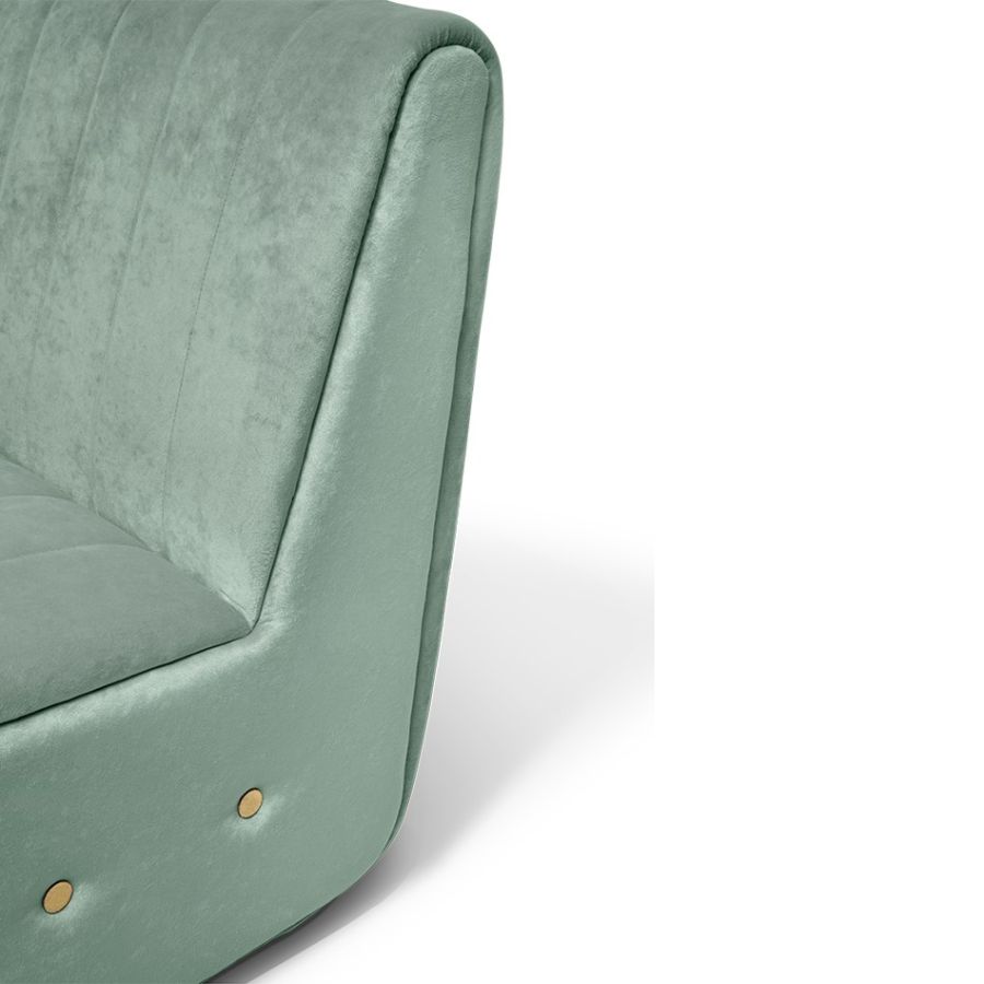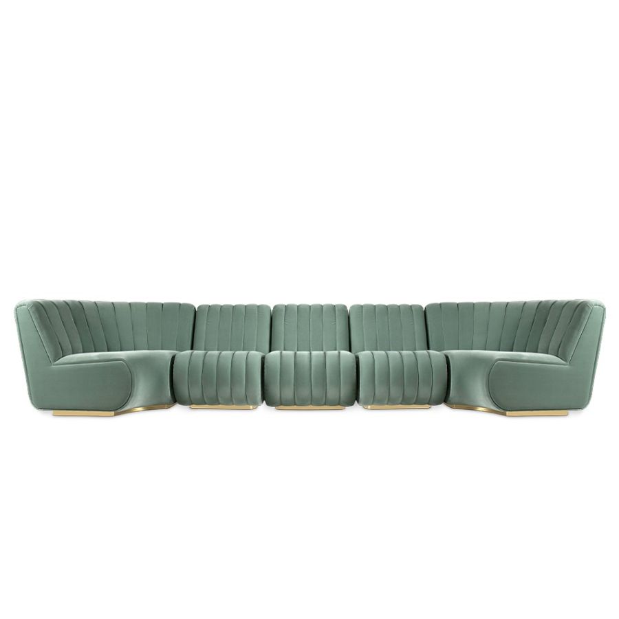 The Sophia Sectional Sofa is a beautiful Mid-century Modern piece with luxurious fabrics and handcrafted metal base. Its button tufted sides and customizable finishes add to its allure. This modular sofa, rounded and oversized, is the perfect shapeshifter piece that will complement your living room perfectly, no matter the style you're working with.