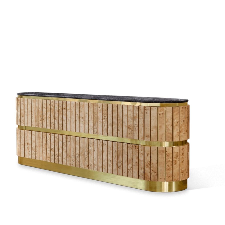 Made from high-quality materials such as brass, marble and velvet, Antin Sideboard showcases the best of mid-century design. A versatile piece for organizing and displaying items in the dining room, living room, or even the bedroom. Its understated yet striking presence adds a touch of retro charm to any interior, making it a popular choice.