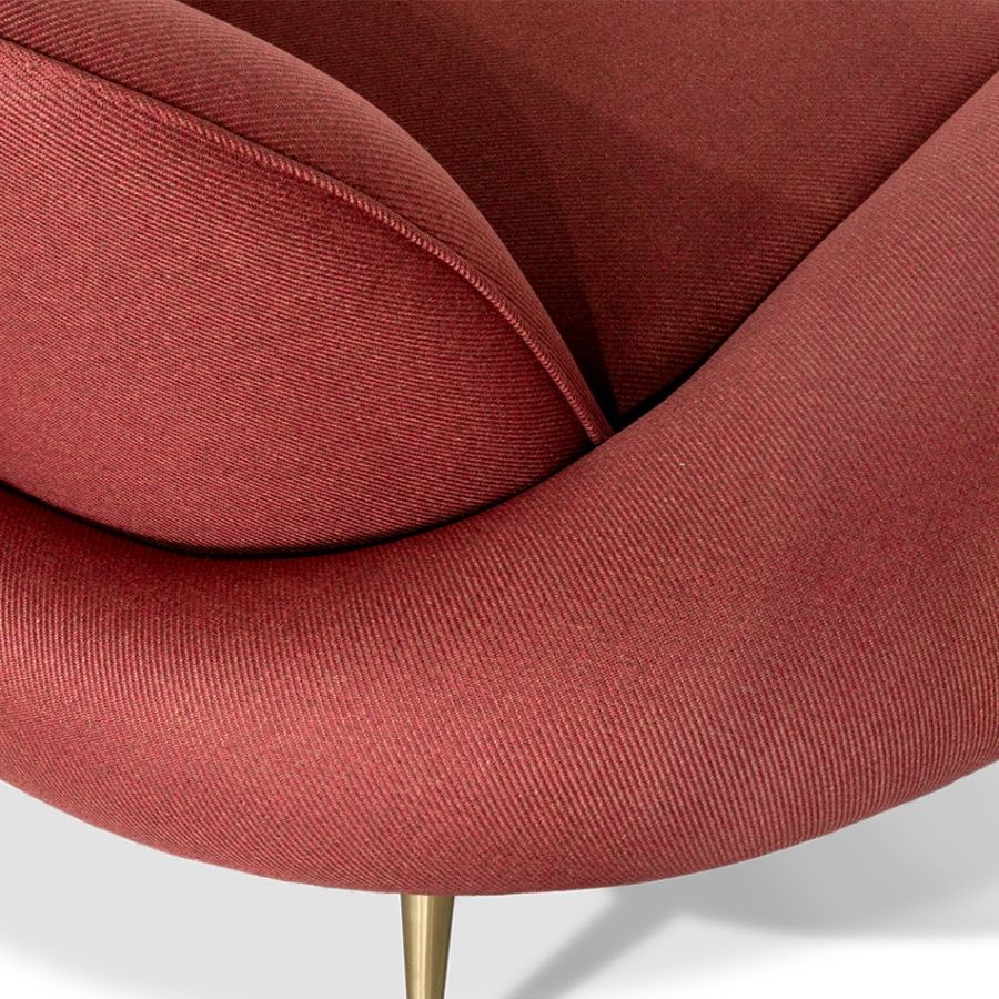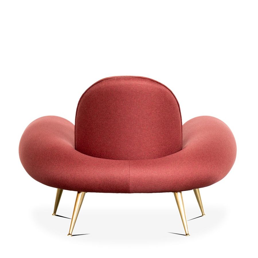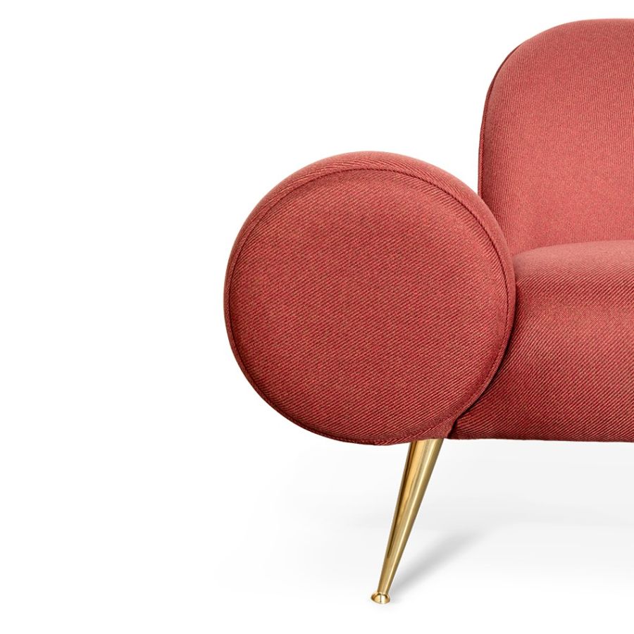 With space-age aesthetics, we present, Apollo armchair, a futuristic statement. Geometric lines with vintage charm, adorned with polished brass legs. A comfortable seat and reclined back, a singular design with a mid-century twist. Embrace the space-age inspiration and fall in love with this unique piece.