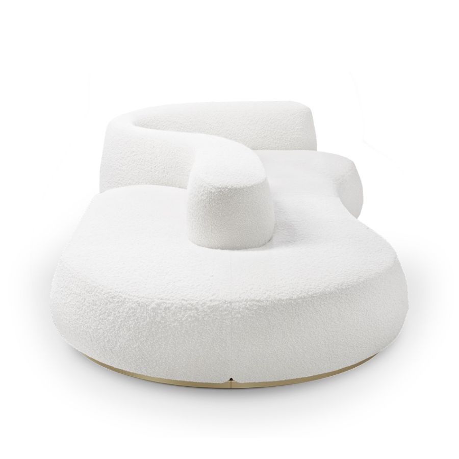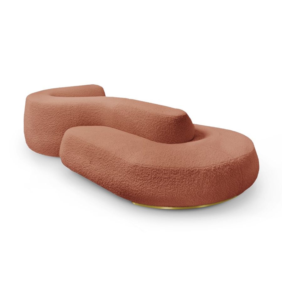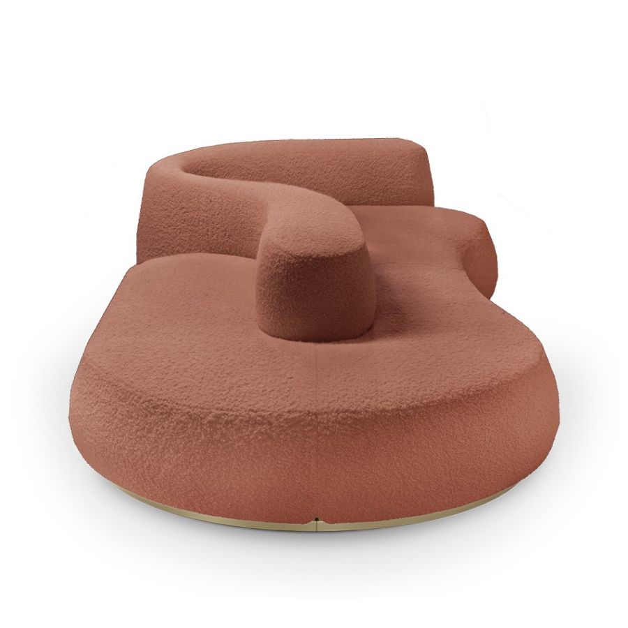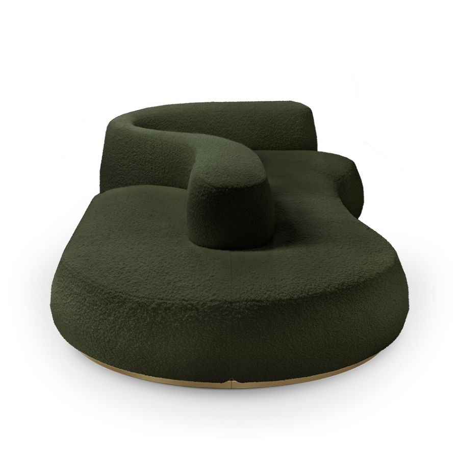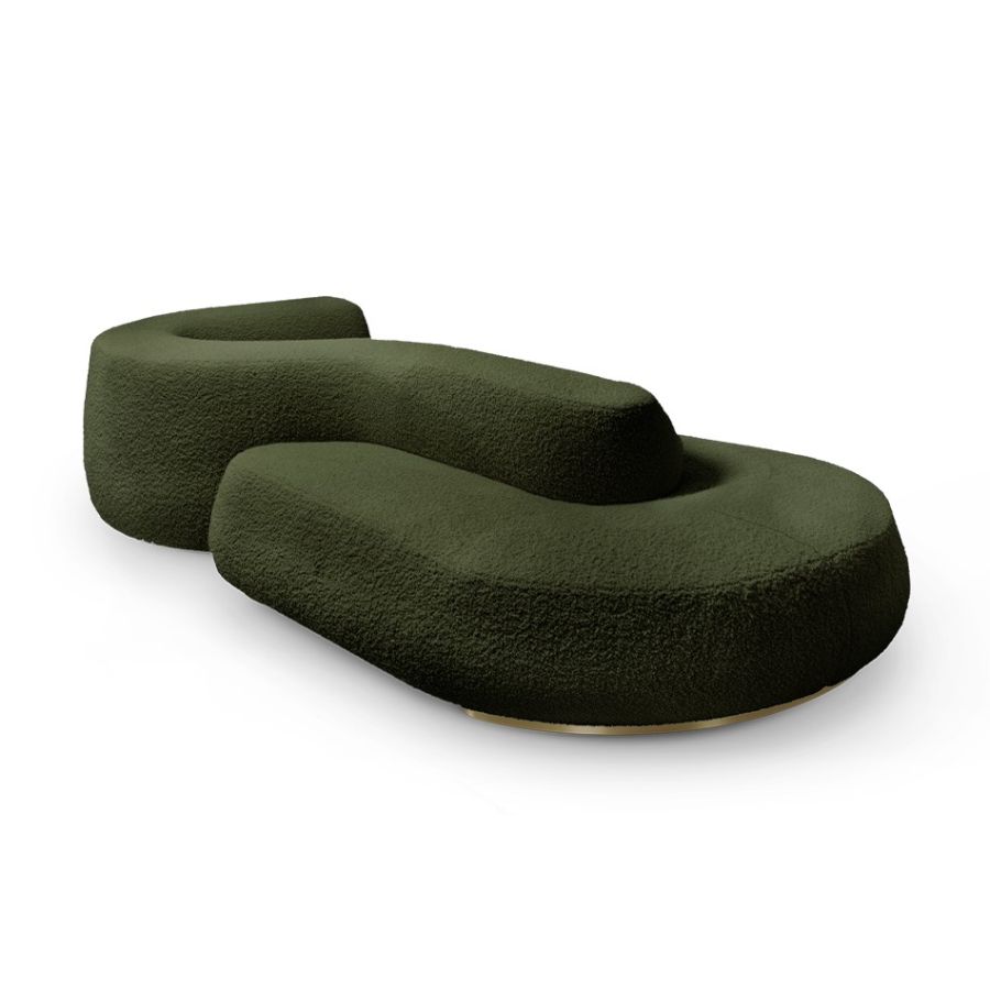 Karim Rashid's dream of a beautiful 'newtopia' is reflected in the Kay sofa, featuring soft and elegant forms. Crafted with high-quality materials, this uniquely designed sofa offers comfort and it serves as a place for relaxation, ideation, connection, and dreaming, fulfilling Karim's vision of creating a perfect haven on his imagined island.