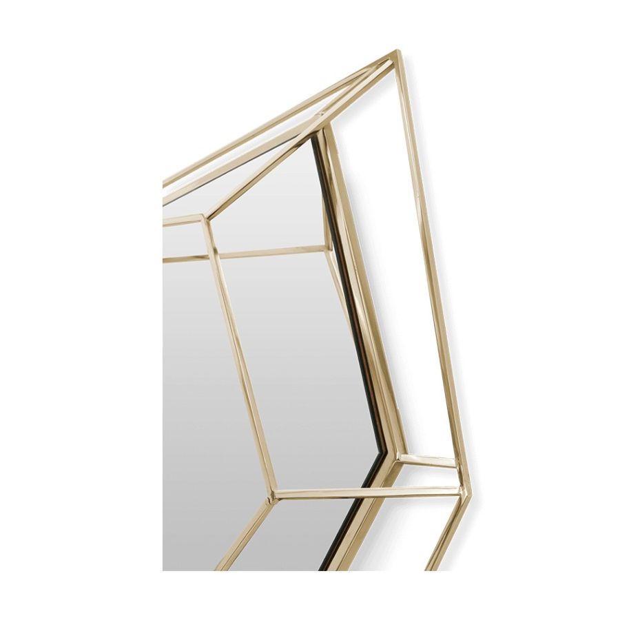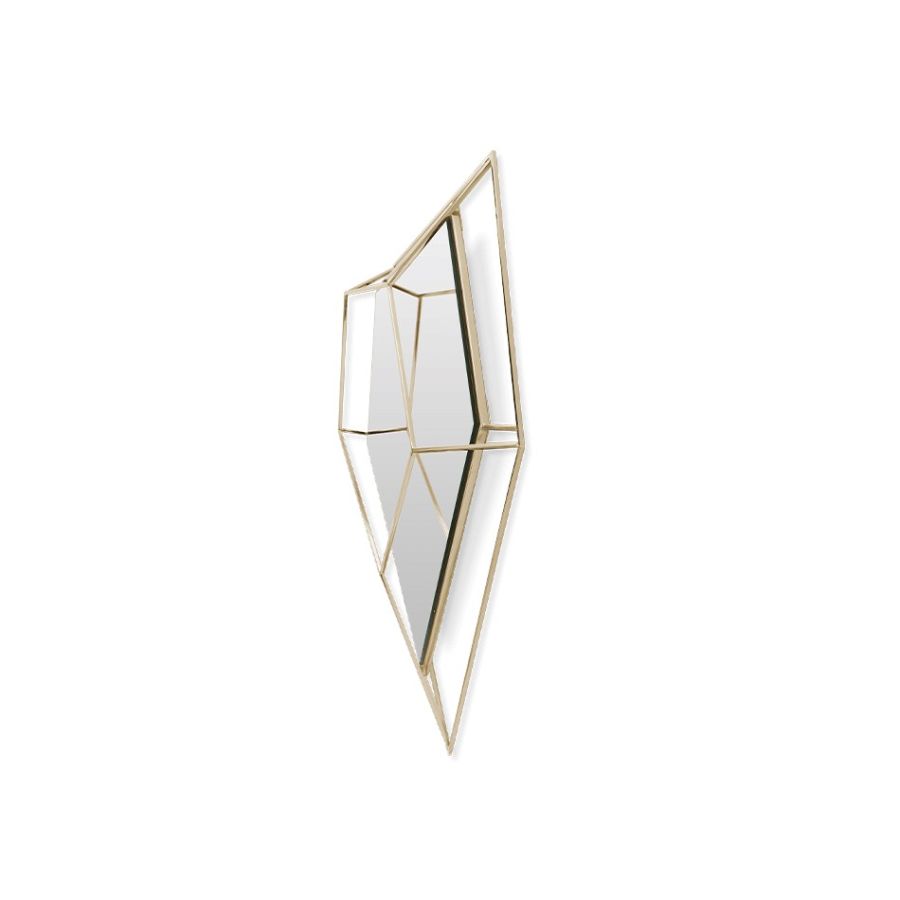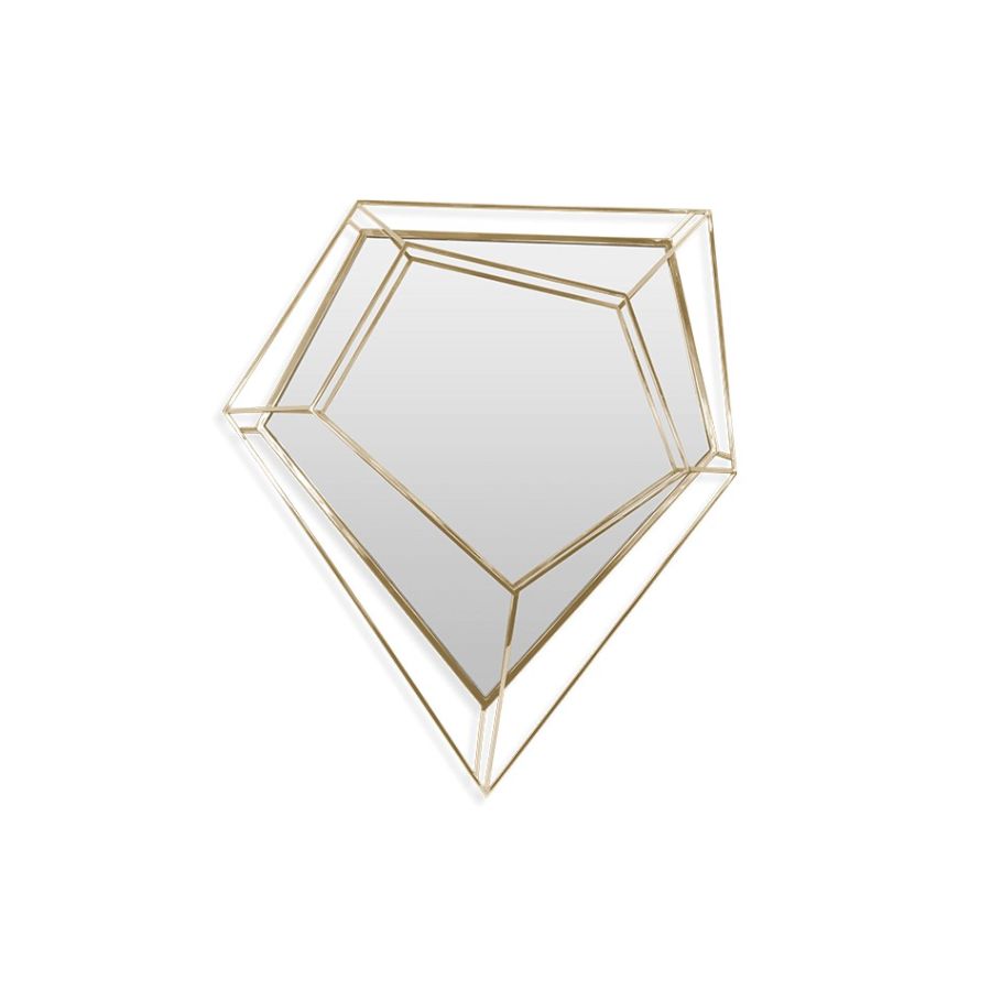 The ultimate combination of geometry and design. Inspired by the asymmetrical and dazzling shapes of a Diamond rock, the use of a polished brass structure enhances the luxurious element within this object.