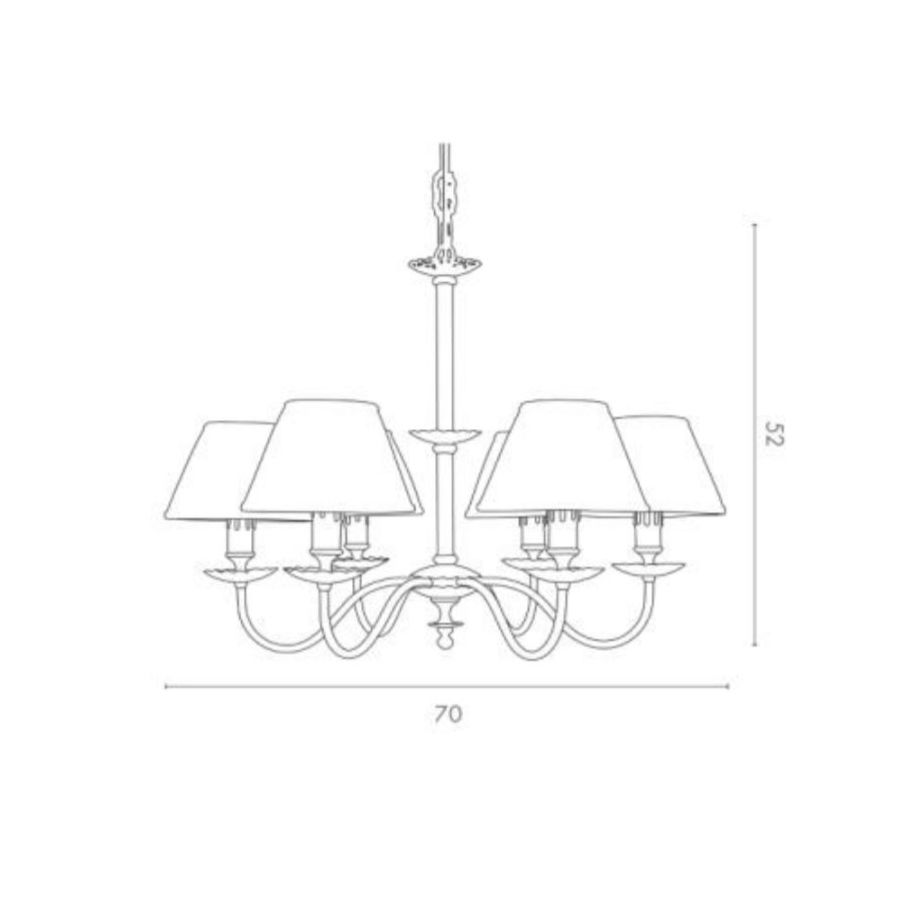 Chandelier with 6 lights in brass. Fabric lampshades.