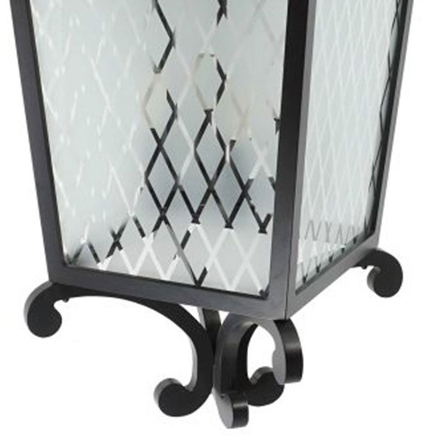 Indoor lantern in painted wood and sandblasted silk-screen printed glass.