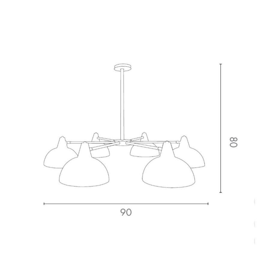 Chandelier with 6 arms in brass structure and metal painted lampshade.
