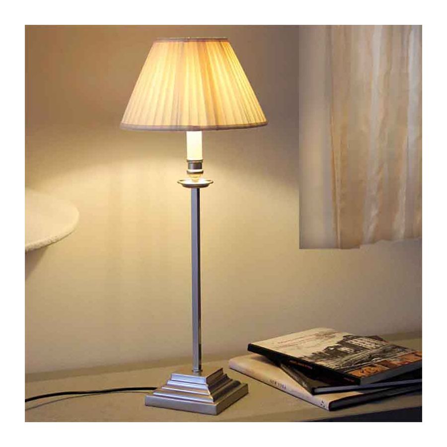 Satin nickel finish brass table lamp. Fabric lampshade.