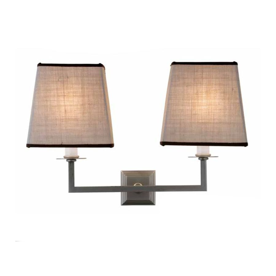 Lamp for wall installation mounting bracket for fixing at wall. Structure in brass with double fabric lampshades.