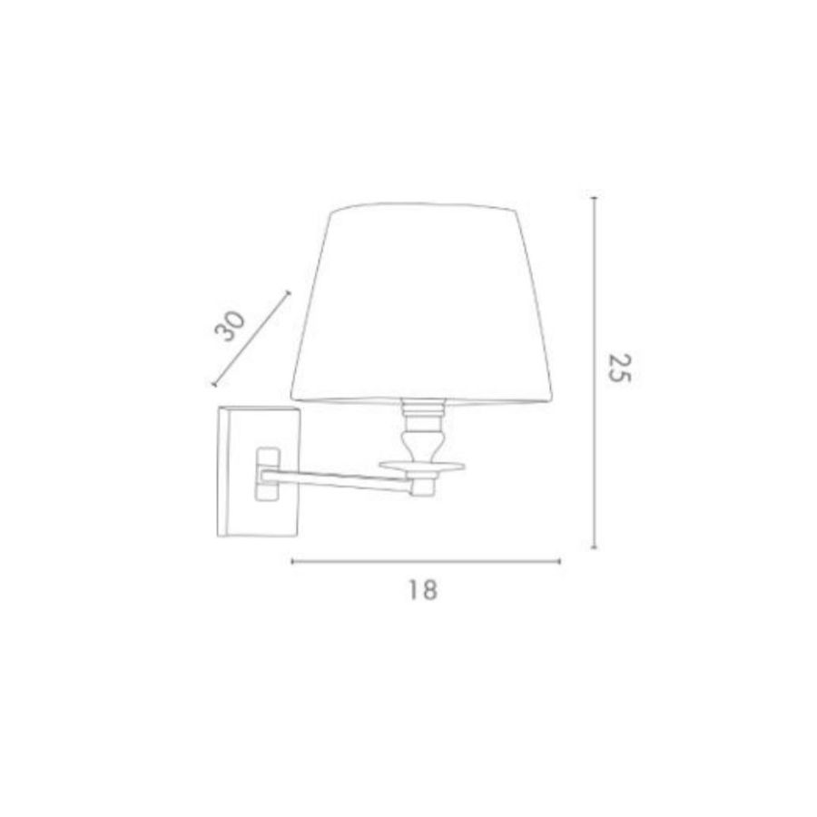Lamp for wall installation mounting bracket for fixing at wall. Structure in brass with adjustable arm and fabric lampshades.