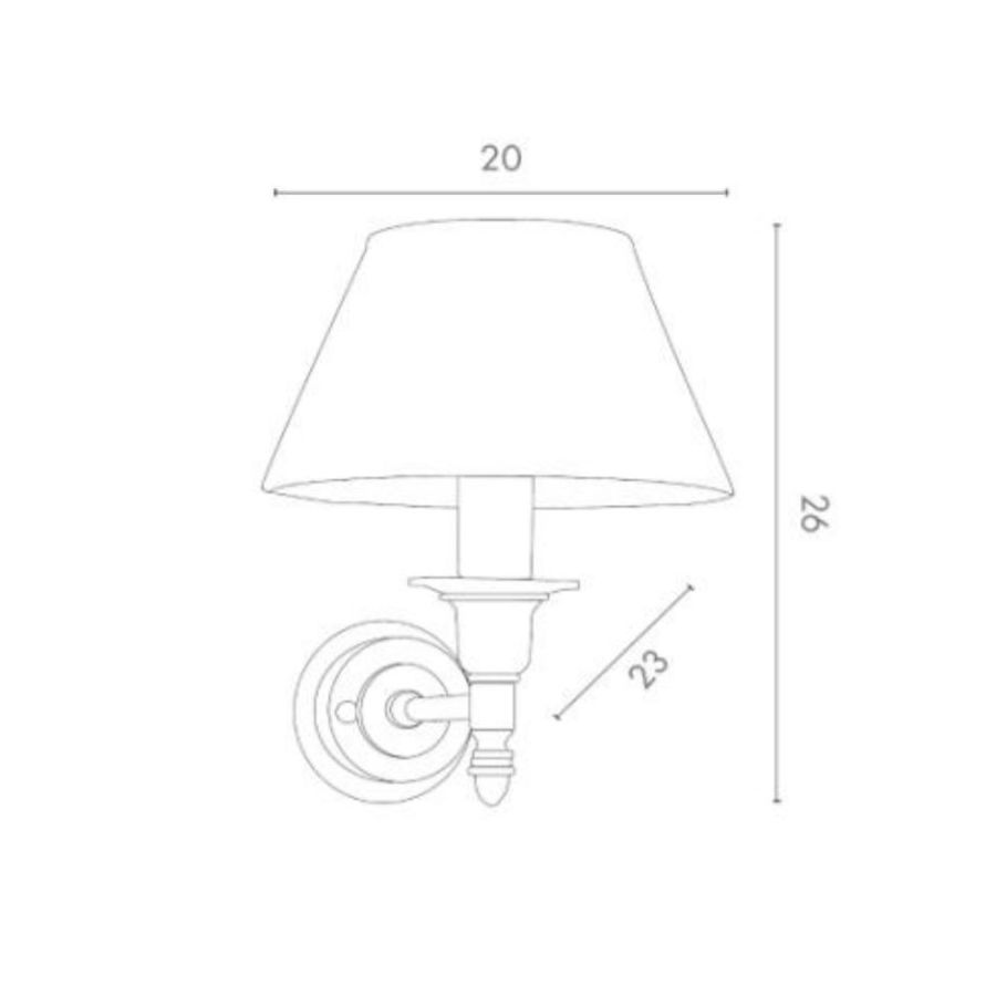 Lamp for wall installation mounting bracket for fixing at wall. Structure in brass and fabric lampshades.
