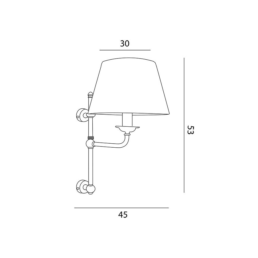 Lamp for wall installation mounting bracket for fixing at wall. Structure in brass an fixed arm with fabric lampshade.