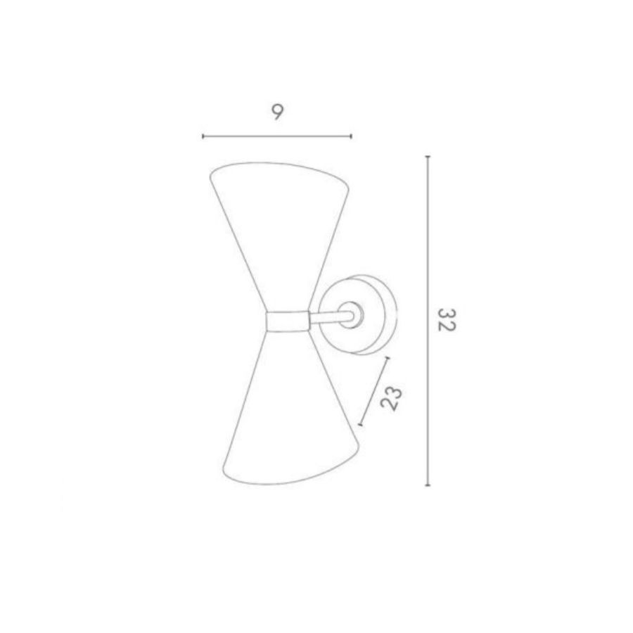 Lamp for wall installation mounting bracket for fixing at wall. Structure in brass with double painted metal lampshades.