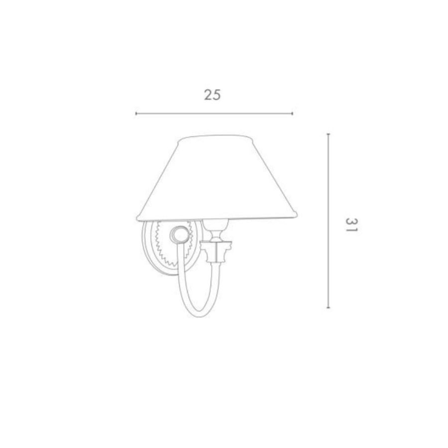 Wall lamp in brass with one light. Fabric lampshade.