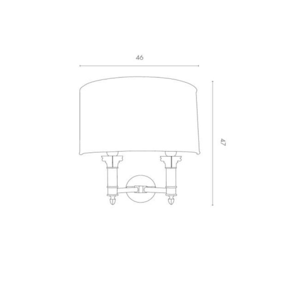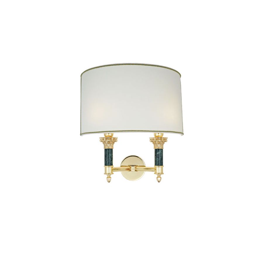 Wall lamp in brass with double lights and marble details. Fabric lampshade.
