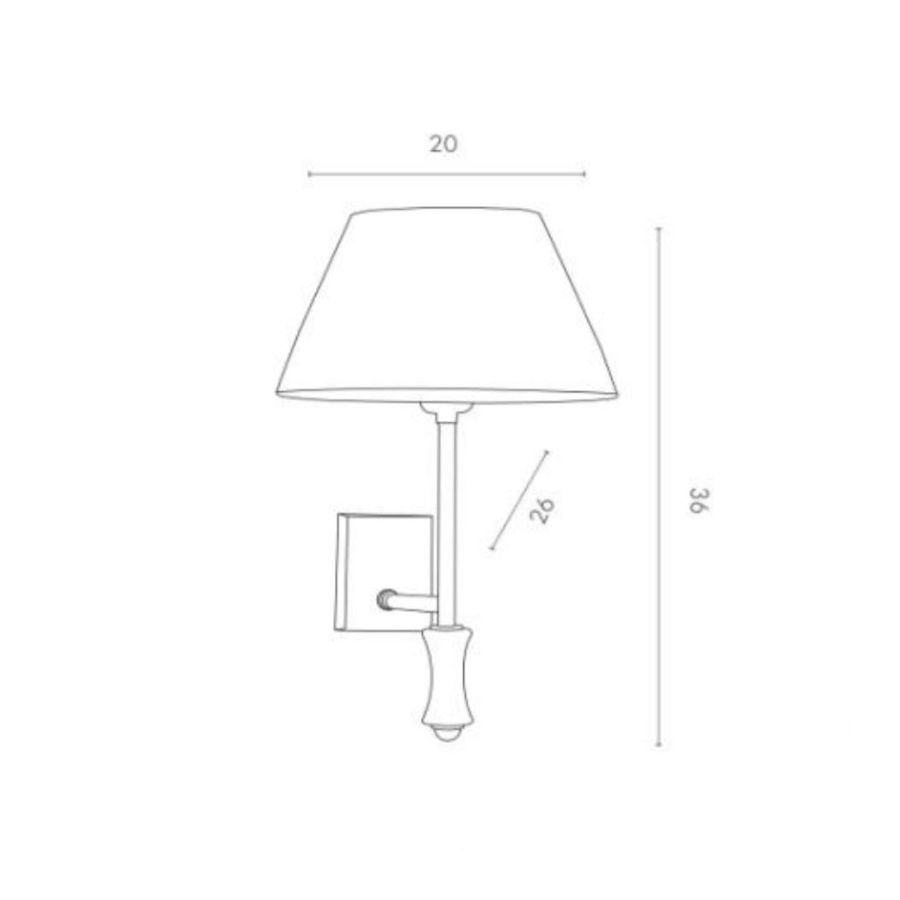 Lamp for wall installation mounting bracket for fixing at wall. Structure in metal and wood with fabric lampshades.