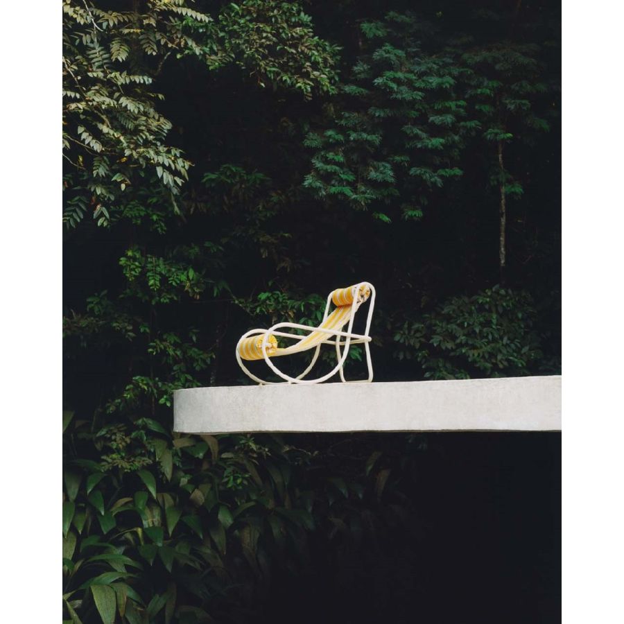 Soft tubular padding flows into a curved steel frame, creating a seat of bold elegance. Revived by Exteta and Jacquemus, the iconic 1964 Locus Solus Armchair unites vintage allure with contemporary fabrics, blending comfort, artistry, and unmistakable style.