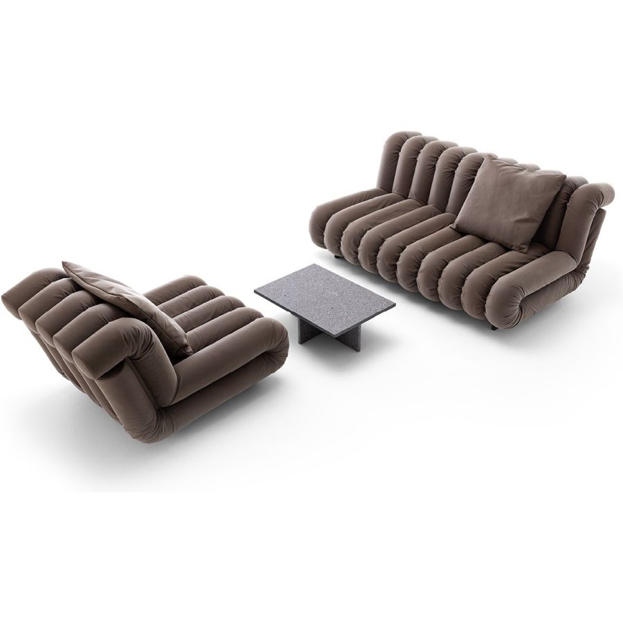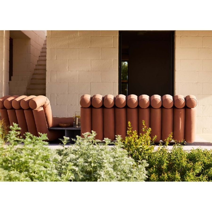 The Periscopio Armchair turns the 1970s spirit into a contemporary icon. Its structure of five upholstered tubes celebrates seriality with playful elegance. Quirky and cozy, it adds character to any outdoor space. Made to resist sun, rain, and salt, it blends durability with bold, timeless design.