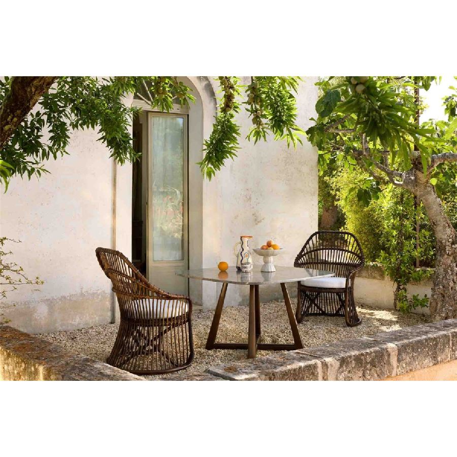 La Martingala Chair, designed by Marco Zanuso in the 1950s, returns as a tribute to Italian design. Handmade in rattan with thermo-bending, these seatings blend sinuosity and strength. Available in natural or barrique finishes, they bring timeless elegance and modern comfort to outdoor living.