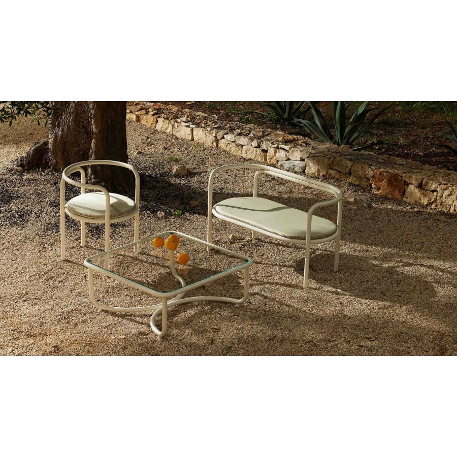Locus Solus Table blends Aulenti’s creativity with Jacquemus’ bold vision. Its airy glass top and tubular frame embody vintage pop charm reimagined for today, turning dining into a statement of playful elegance and unmistakable style.