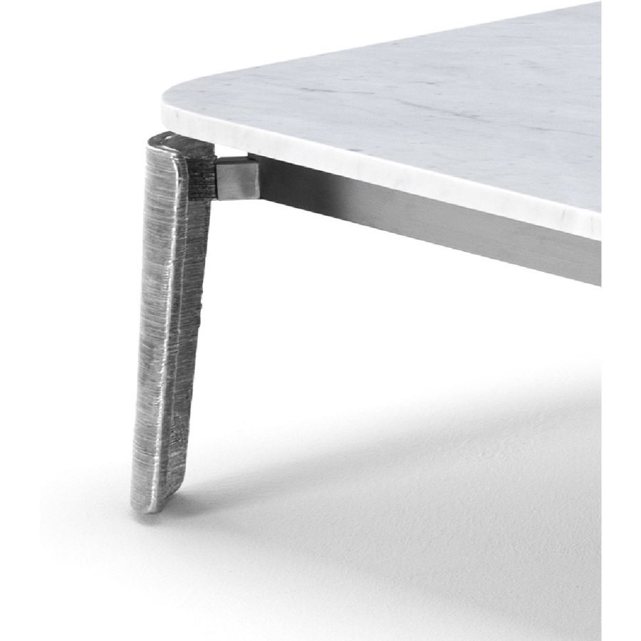 The Moonlight Rectangular Coffee Table combines marble with cast metal to create a sculptural presence. With essential lines, a wide surface, and a low center of gravity, it conveys balance and solidity. Available with aluminum or bronze legs, it enriches outdoor spaces with timeless elegance.